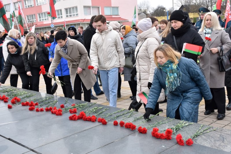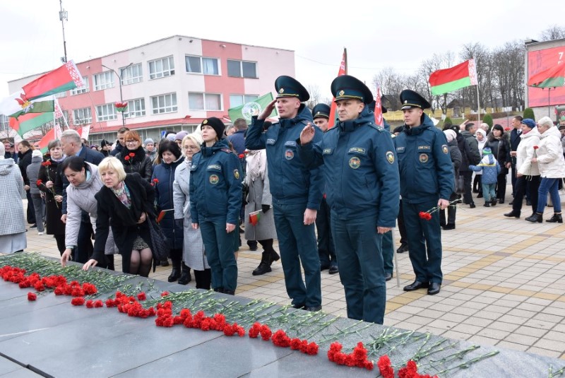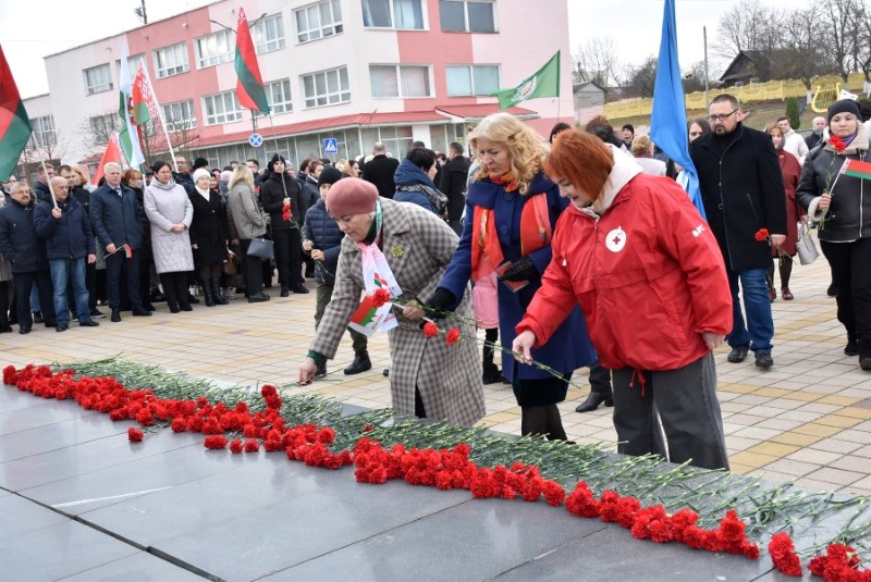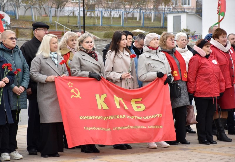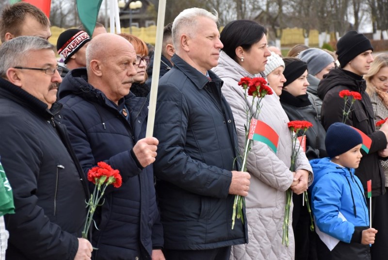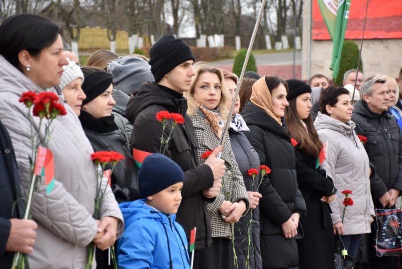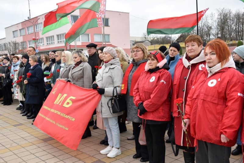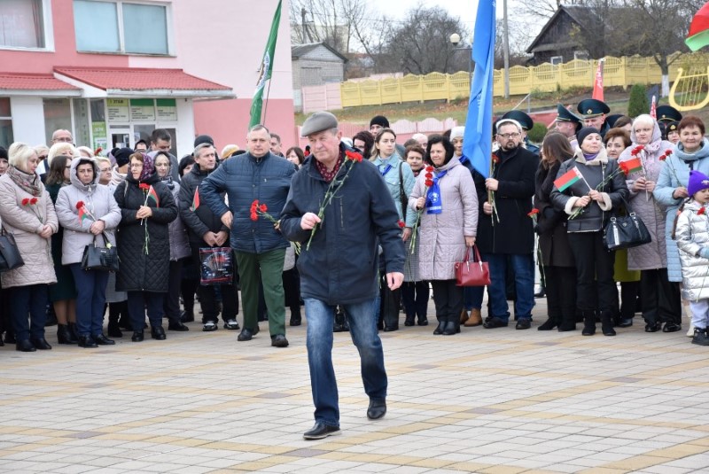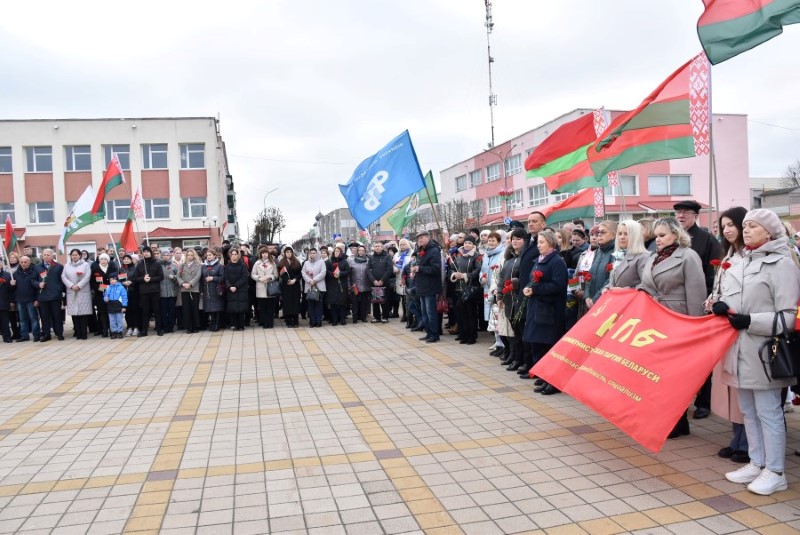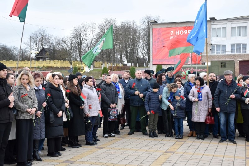 Завяршыўся ўрачысты мітынг традыцыйным ускладаннем кветак да падножжа помніка Уладзіміру Ільічу Леніну.