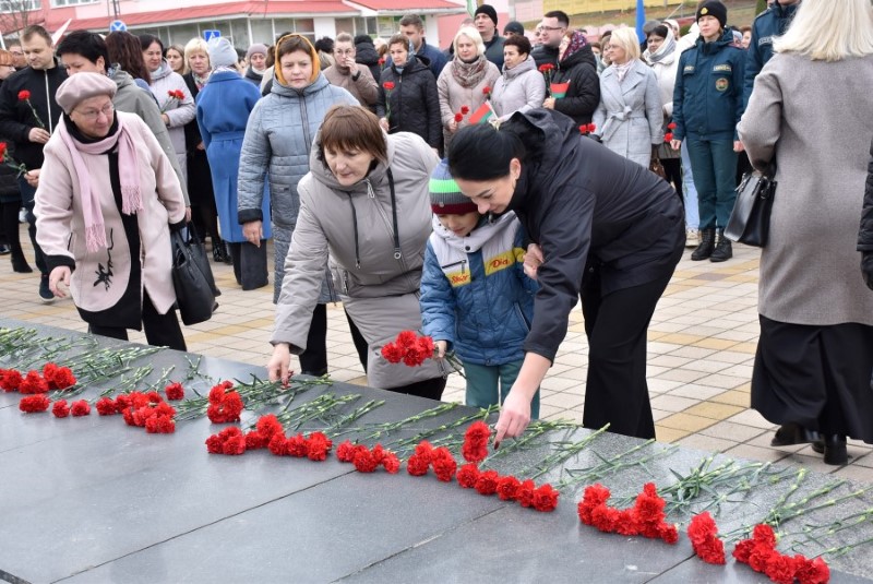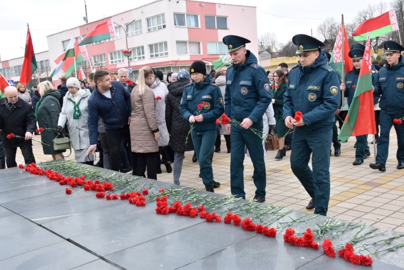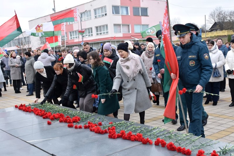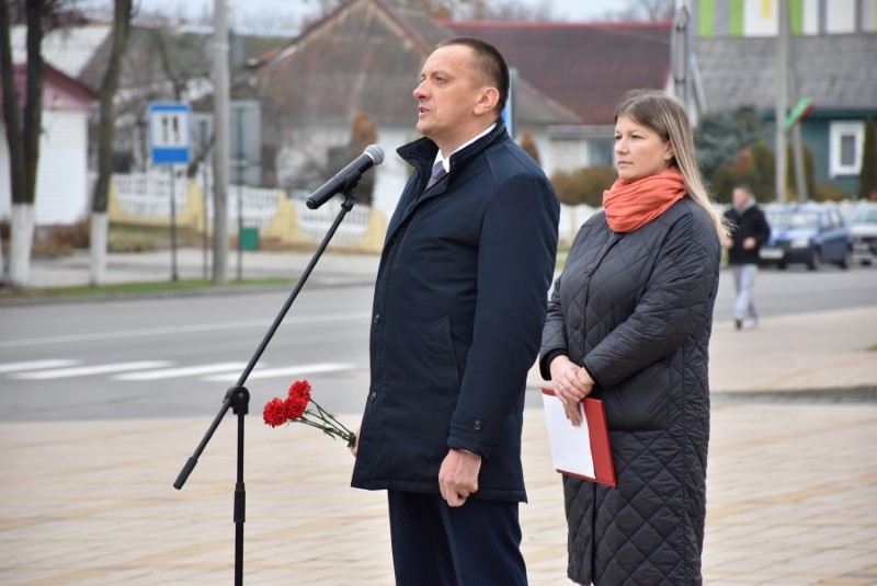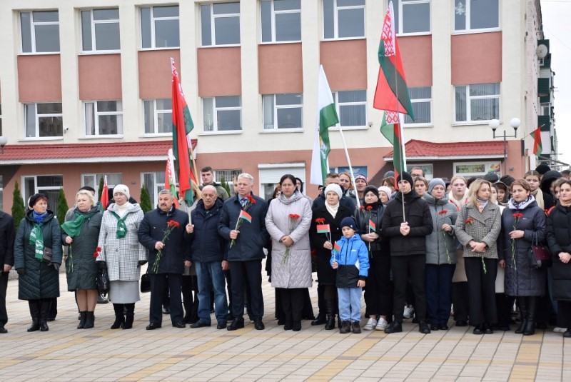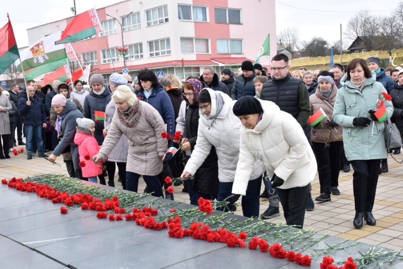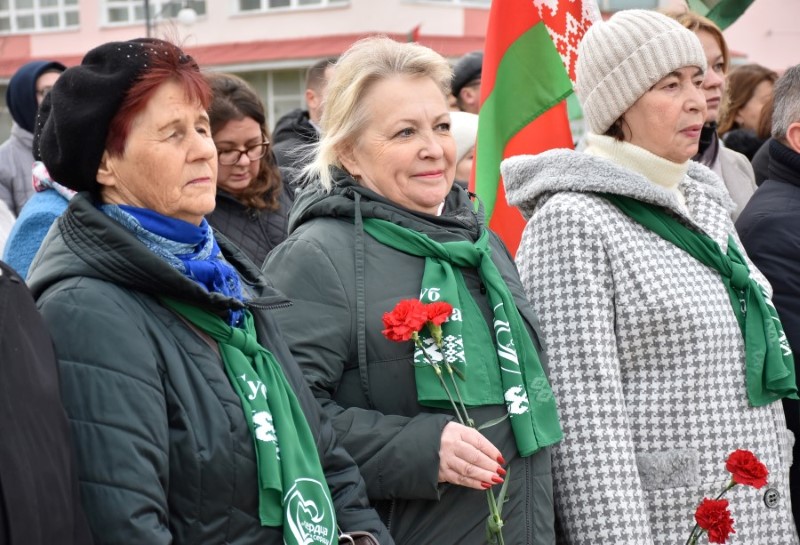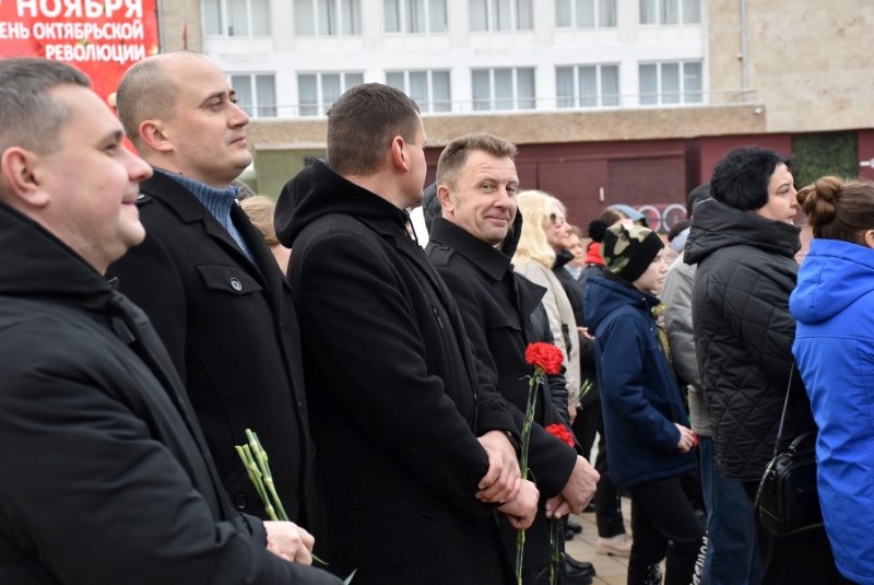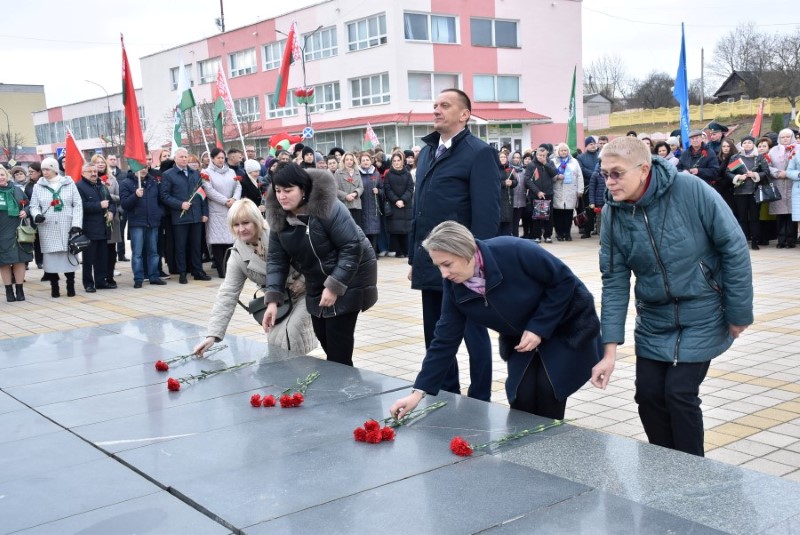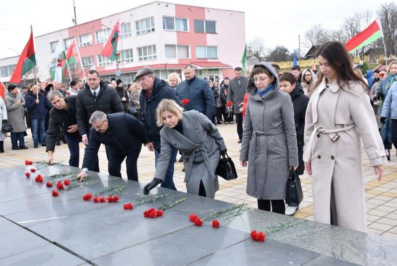 Завяршыўся ўрачысты мітынг традыцыйным ускладаннем кветак да падножжа помніка Уладзіміру Ільічу Леніну.