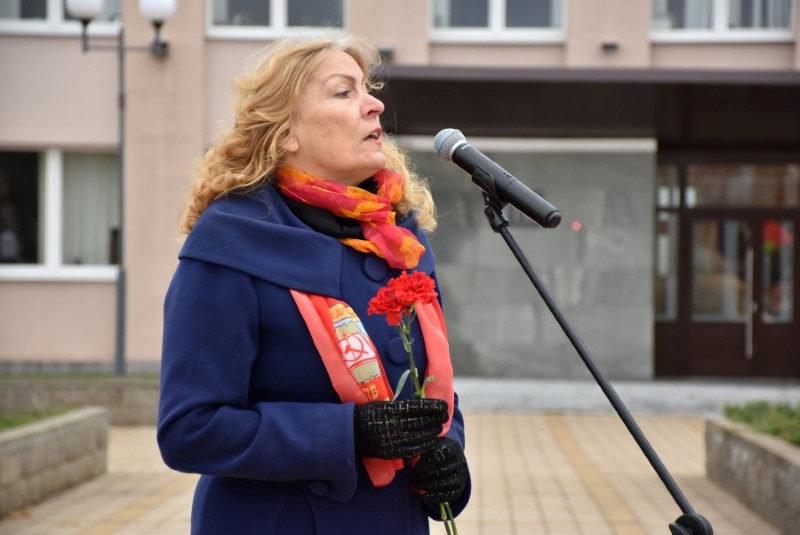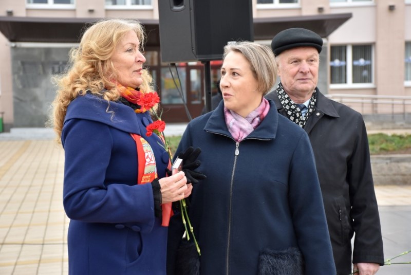 Затым з віншаваннямі з нагоды 107-й гадавіны Кастрычніка звярнулася першы сакратар раённай арганізацыі Камуністычнай партыі Беларусі Вольга Калячка. Яна, да таго ж, уручыла юбілейныя медалі з нагоды 80-годдзя вызвалення Беларусі ад нямецка-фашысцкіх захопнікаў некаторым членам КПБ. У іх ліку аказаліся члены партыі Анатоль Зябко, Тамара Круталевіч, Анатоль Палынскі і Мар’яна Стаброўская.