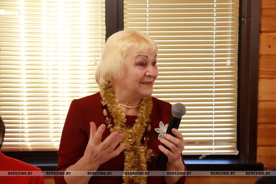 Главное действо развернулось далее в помещении комплекса. Здесь собрались совет пожилых граждан во главе с Раисой Бурцевой, совет ветеранов под предводительством Анатолия Зябко, клуб ветеранов педагогического труда «Сустрэча» во главе с Маргаритой Булойчик.