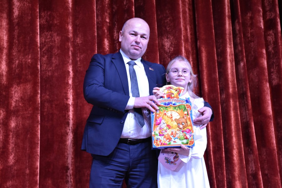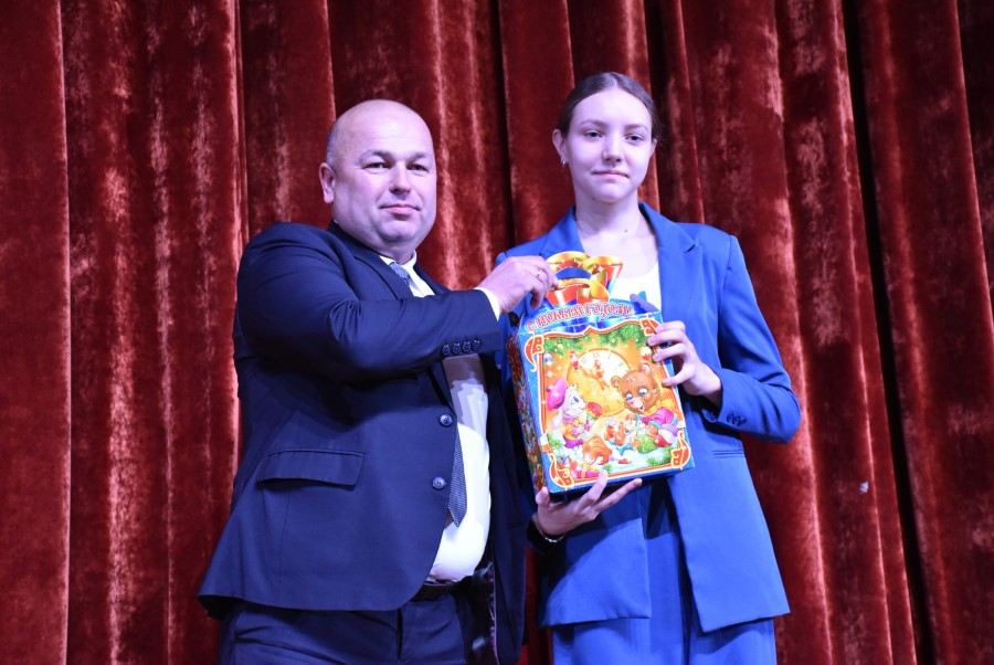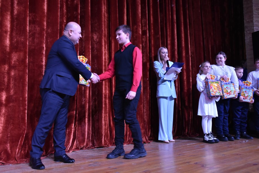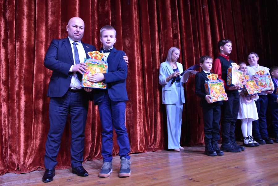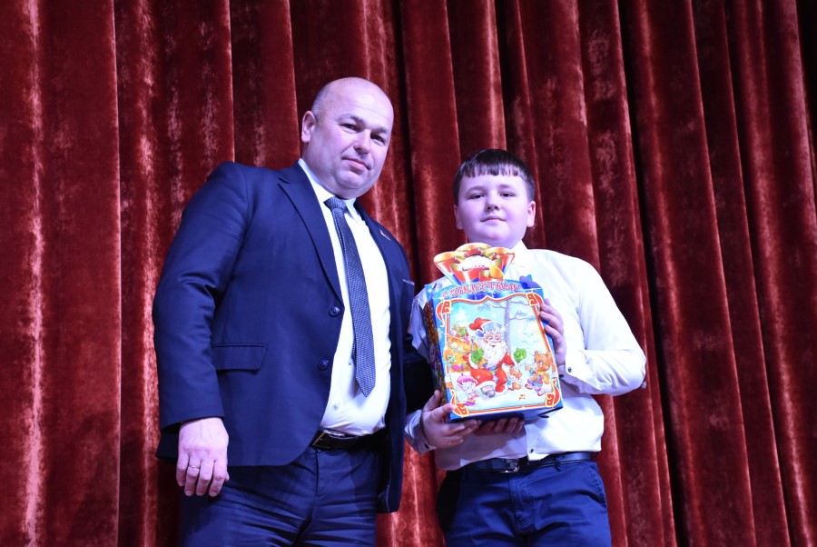 Затем Андрей Валентинович вручил наиболее отличившимся на протяжении года ребятам Новогодние подарки.