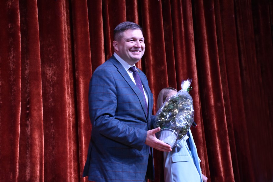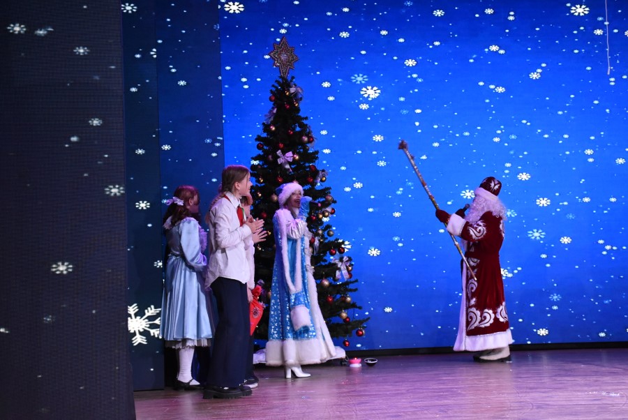Обращаясь к собравшимся, Андрей Валентинович поздравил всех с наступающим праздником и пожелал ребятам в следующем году новых открытий, успешной учебы и мира над головой, жить счастливо, светло и мирно.