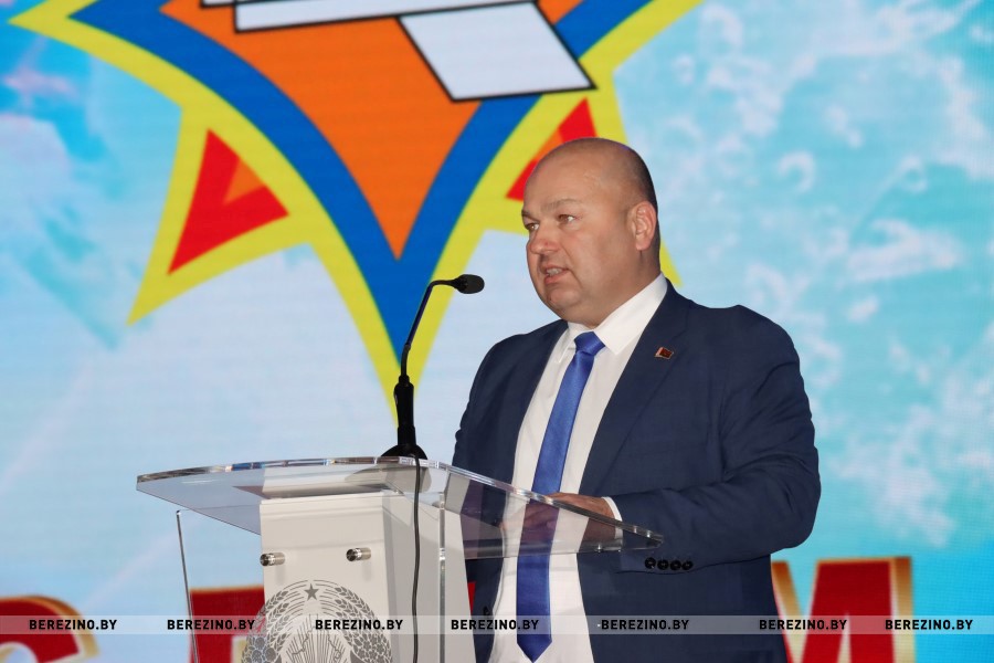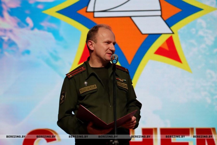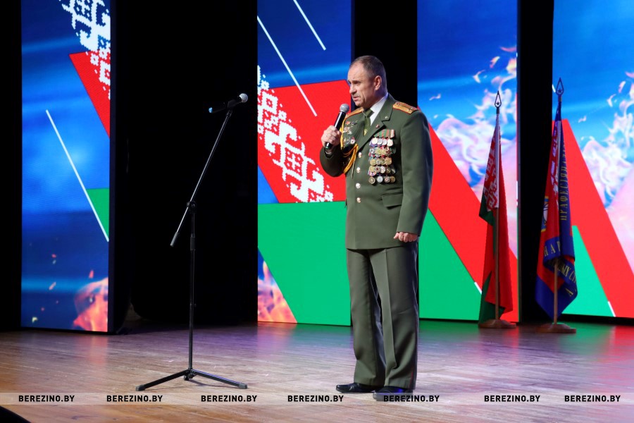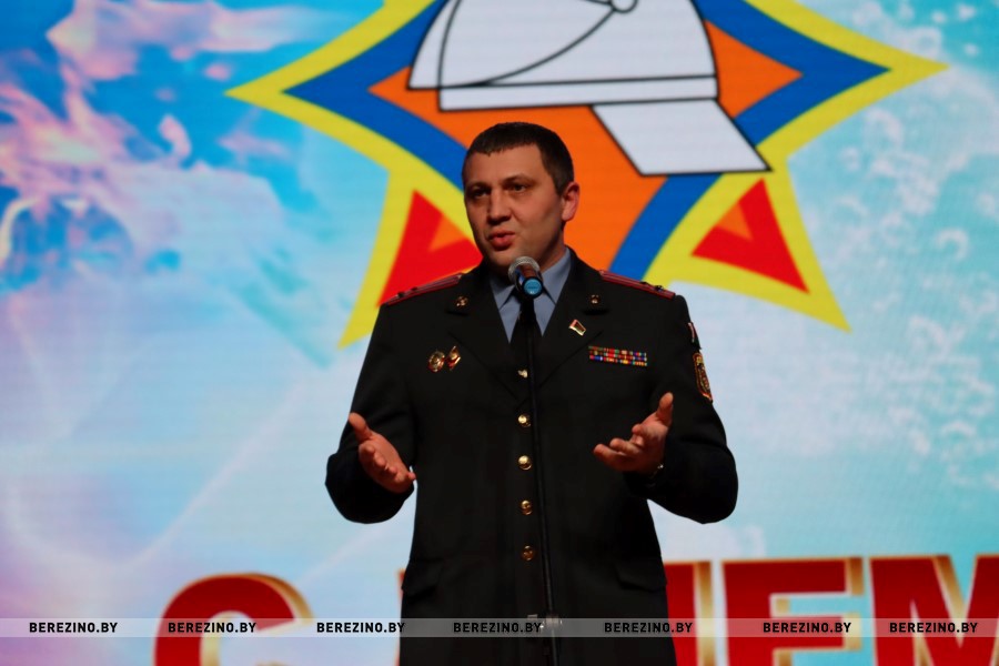 После фильма о становлении службы МЧС за последние 30 лет белорусской государственности и представления почётных гостей праздника к микрофону с поздравительным словом поднялся начальник Березинского РОЧС Иван Мазаник.