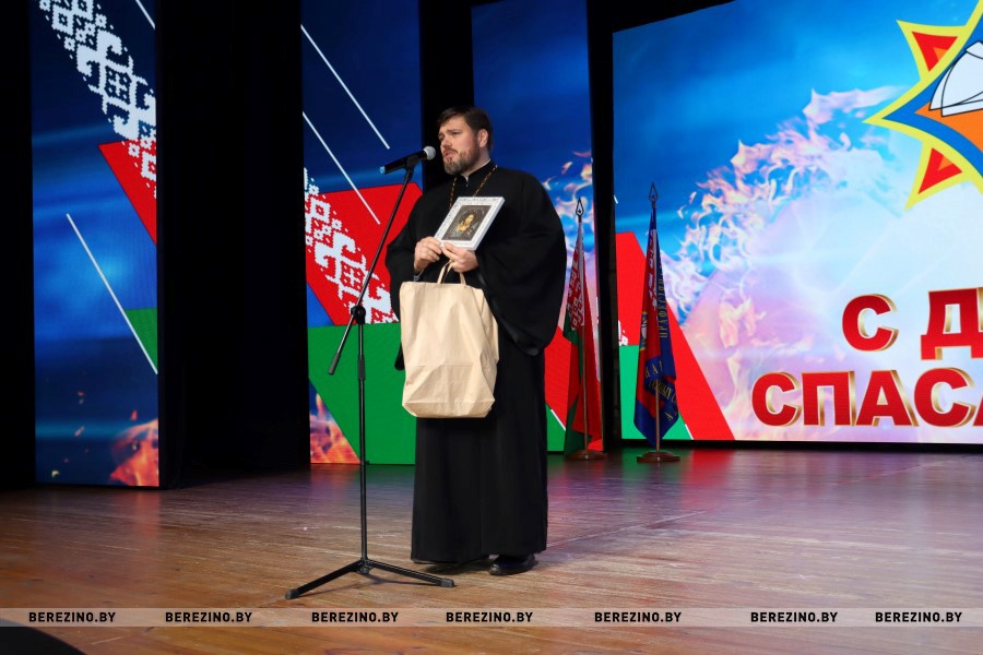 Поздравил спасателей также благочинный Березинского церковного округа настоятель Никольского храма протоиерей Илья Гончарук. Отец Илья отметил важность профессии тех, кто стоит на страже нашего спокойствия, и вручил спасателям икону с благословением на труды и служение.