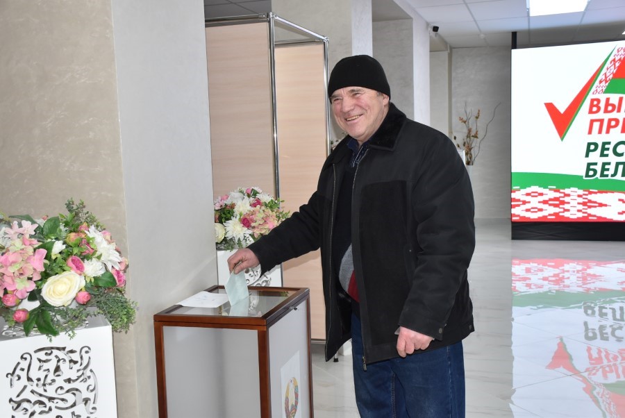 – Работаю в лесхозе оператором лесотранспортёра. Голосую за нашу стабильно и успешно развивающуюся страну, за Беларусь! Я голосую здесь, а сейчас повезу жену, Наталью Михайловну, голосовать в Лешницу, по месту прописки. У нас двое детей, пятеро внуков. Мы голосуем за наше счастливое настоящее и будущее!