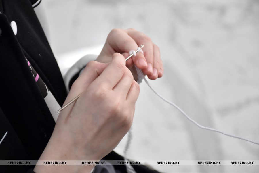 А затем участники приступили к работе: кто – со спицами, кто – с крючком.