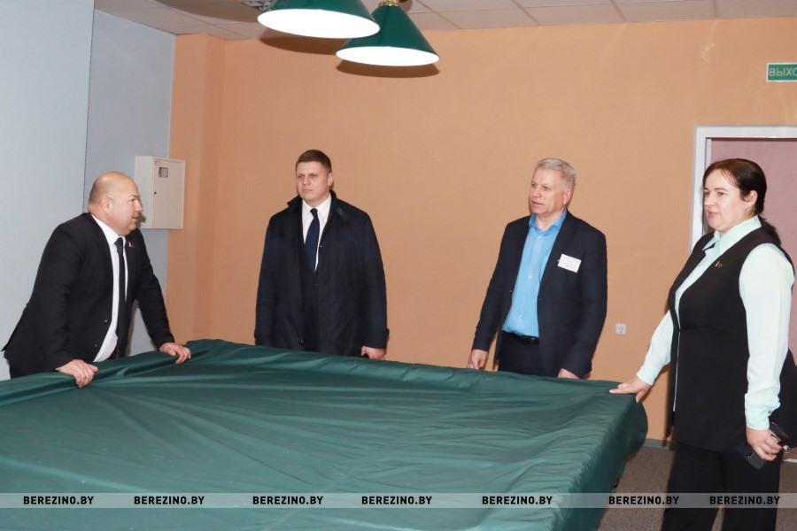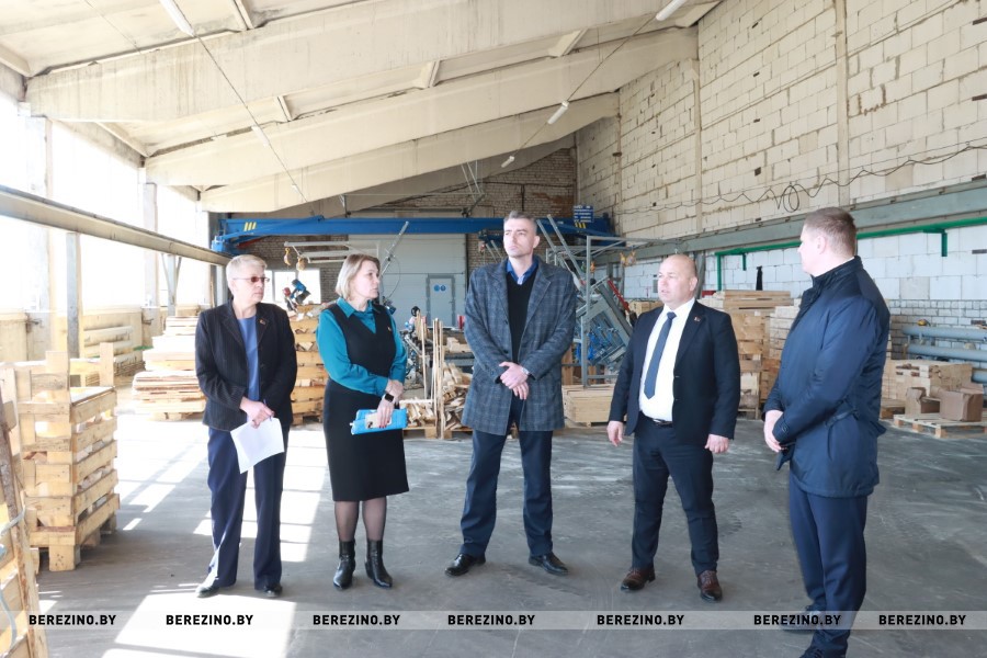 Следующий пункт посещения «Керавуд». Торгово-производственное унитарное предприятие «Керавуд» было создано в 2022-году в рамках осуществления проекта «Один район – один проект» для создания дополнительных рабочих мест. Оно занято производством палет (поддонов) для санитарной керамики, кирпича и иной продукции, выпускаемой известным в республике керамическим заводом «Керамин».