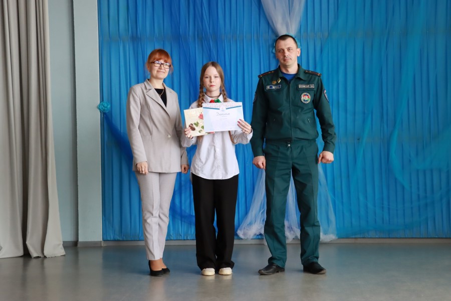 В интеллектуальном конкурсе «Зарница учит» среди командиров отрядов диплом 1 степени у учащейся Поплавской школы Ольги Савич.