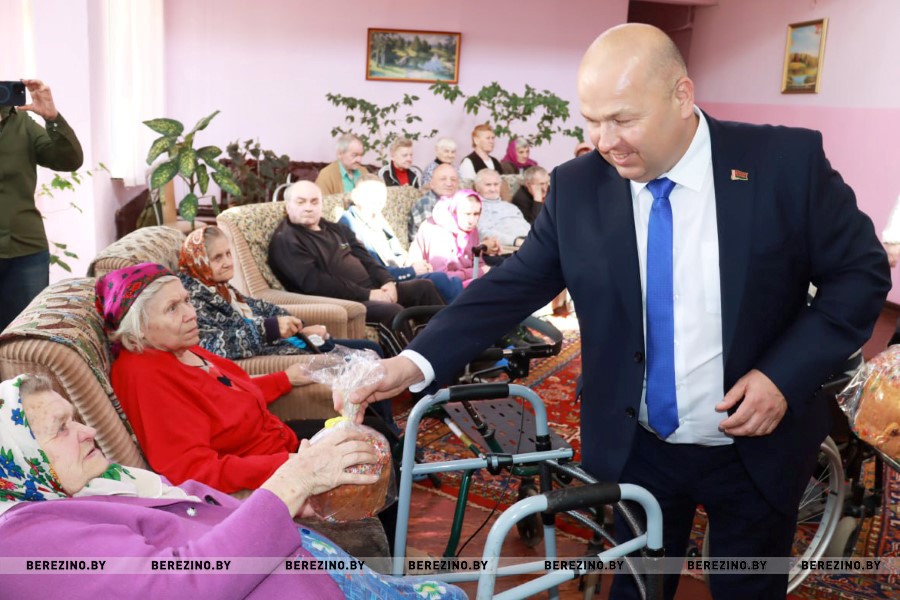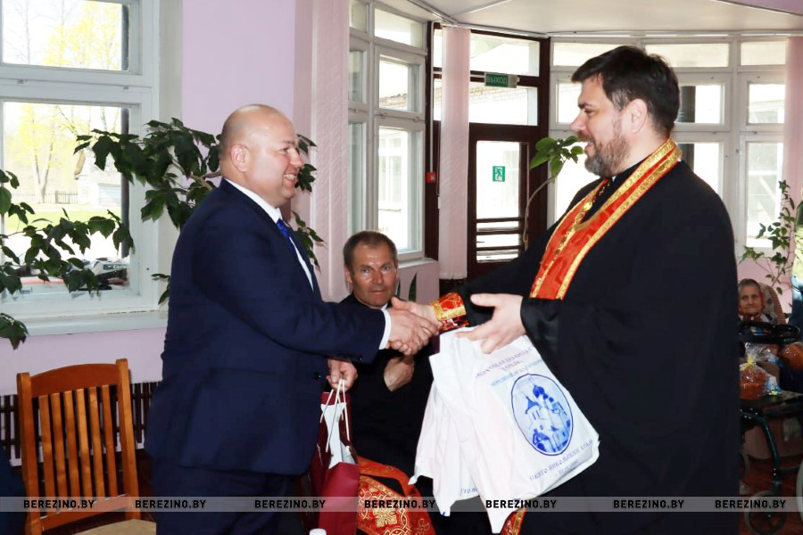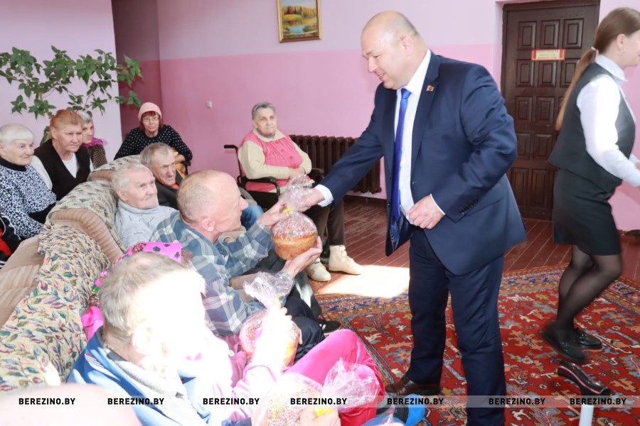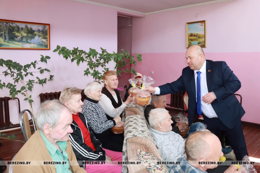 Сегодня глава района Андрей Соколовский, председатель районного Совета депутатов Владимир Трухан, заместитель председателя райисполкома Ольга Колячко, Благочинный Березинского округа протоиерей Илья Гончарук посетили отделение круглосуточного пребывания граждан пожилого возраста и инвалидов в д.Дулебы. Поздравили с великим праздником Пасхи вручили подарки.