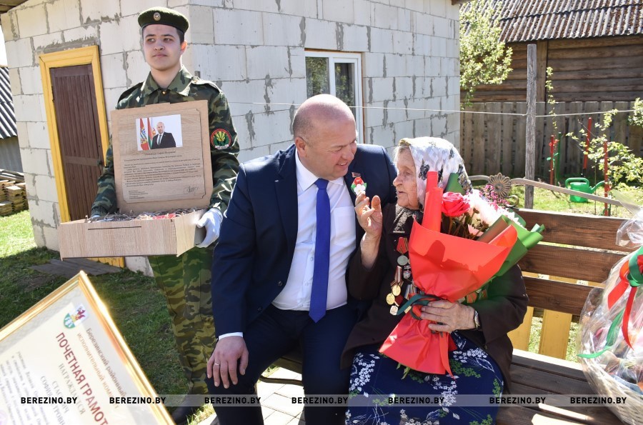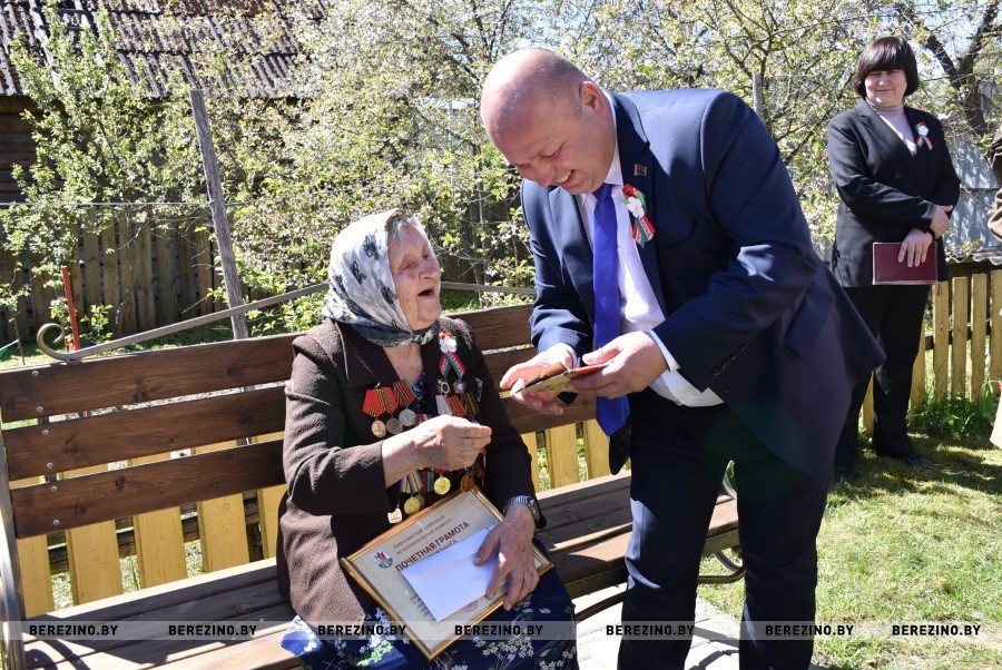 С открыткой от Главы государства, оригинальными подарками, большим букетом цветов, Почетной грамотой заглянули к Софии Петровне председатель Березинского райисполкома Андрей Соколовский, председатель районного Совета депутатов Владимир Трухан, депутат Палаты представителей Национального собрания Республики Беларусь Юрий Корсик, заместитель председателя Ольга Колячко, военный комиссар Червенского и Березинского района Александр Кахнович молодежь, члены клуба «Феникс».