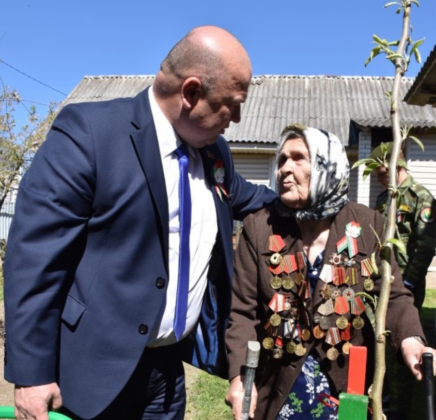 - Спасибо за Победу! – поздравил Андрей Валентинович. – Крепкого здоровья и благополучия. Спасибо за мирное небо, за нашу независимую Беларусь. Слово «мир» по-новому звучит сегодня. И как говорит Глава государства, там у них воюют, роют окопы, а мы строим школы, стадионы, радуемся, празднуем…. Пусть мирное небо всегда будет над нашей страной.