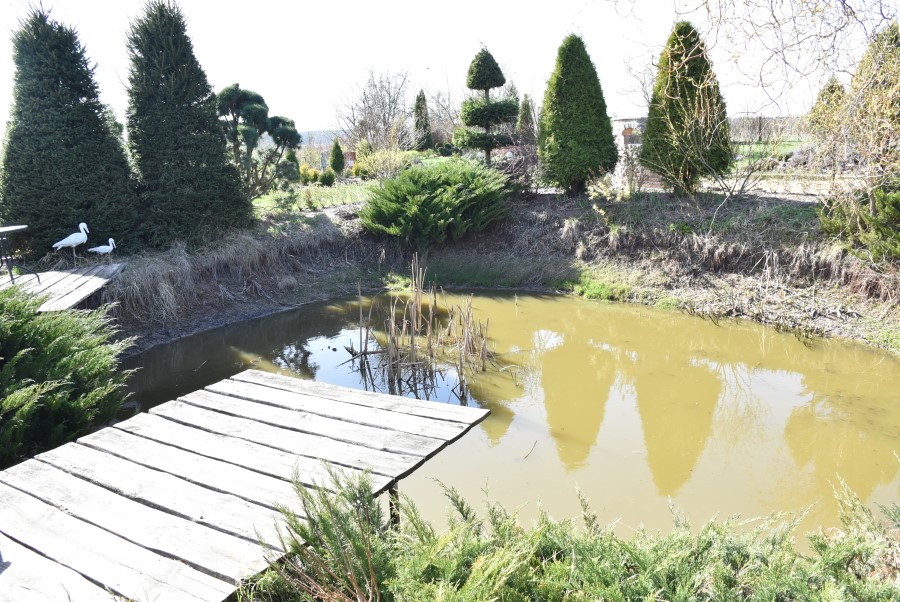 – В нашем пруду живут в основном караси, – улыбается Елена Николаевна. – Их стайки легко можно наблюдать у воды. В этом году было не так много снега, поэтому и в пруду не так много воды. У пруда красоты добавляют две статуэтки – белые цапли, зелень сосны причудливой формы и ели пирамидальной формы, а также многих других деревьев.