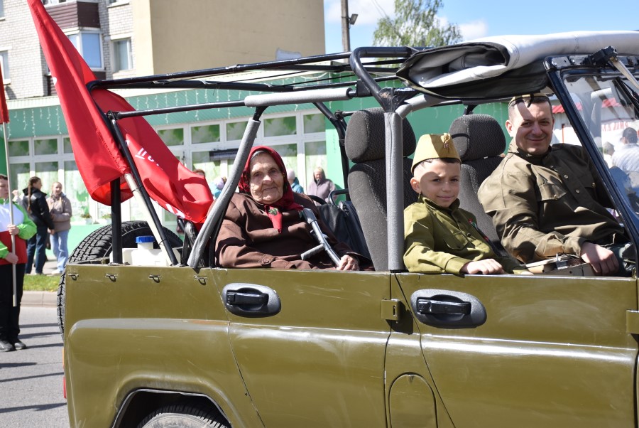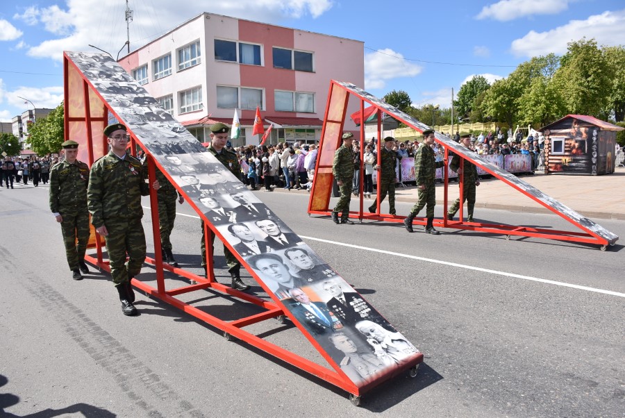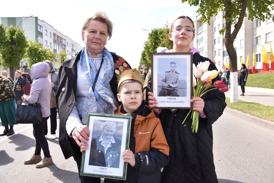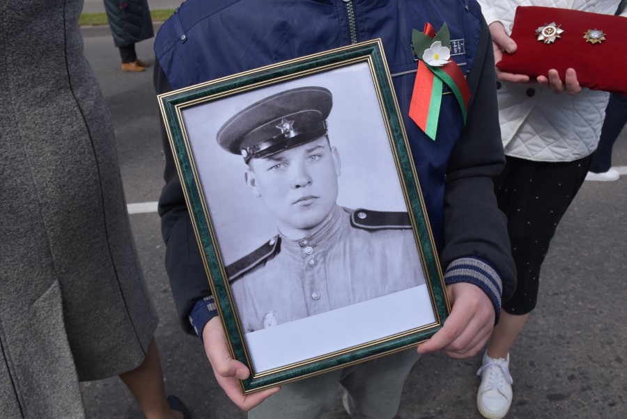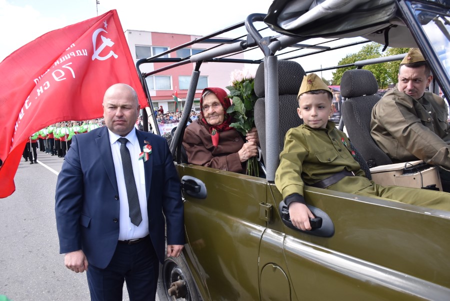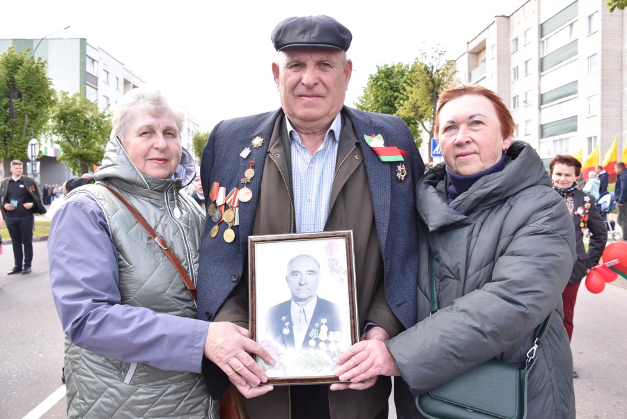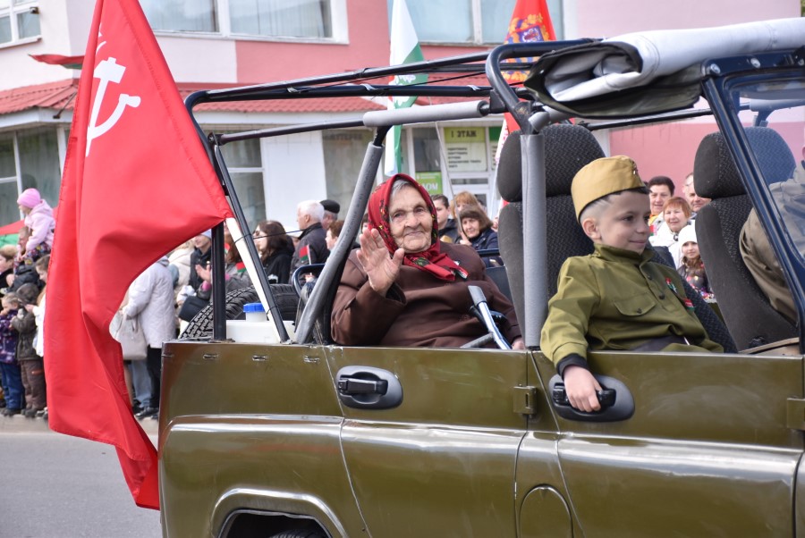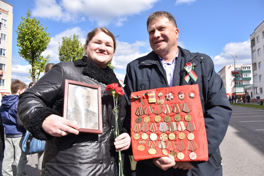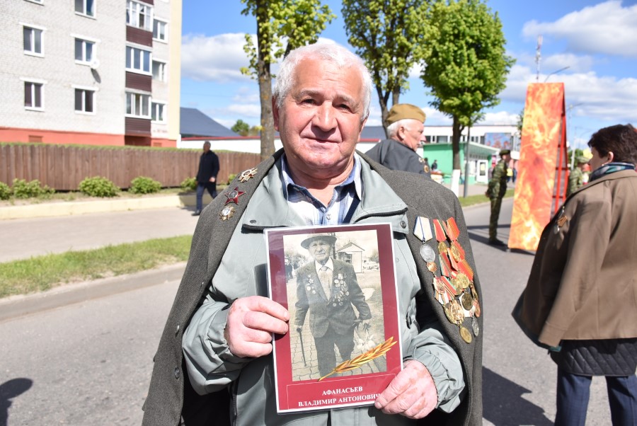 Именно такими словами начиналось театрализованное представление на городской площади в тот день. Но не только мальчишки и девчонки в пиджаках не по росту (их все-таки достали со шкафов!) с боевыми наградами в танце представляли образ памяти о своих прадедах. Фотографии бывших участников войны, своих близких и родственников, несли в руках многие березинцы, образовав колонну «Бессмертного полка». На всю площадь звучат их гордые имена и совершенные ими подвиги. А вот (в это даже не верится, ведь прошло уже 80 лет!) и живой свидетель и участник тех событий – единственный, последний участник войны Березинщины София Петровна Стасевич. В этом году она отпразднует свой вековой юбилей. Есть что вспомнить ветераны, что рассказать молодежи, чем поделиться. Громкими аплодисментами встречали гости праздника Софию Петровну, а председатель Березинского райисполкома Андрей Соколовский преподнес почетному гостю огромный букет цветов. В знак благодарности за подвиг. В знак памяти.