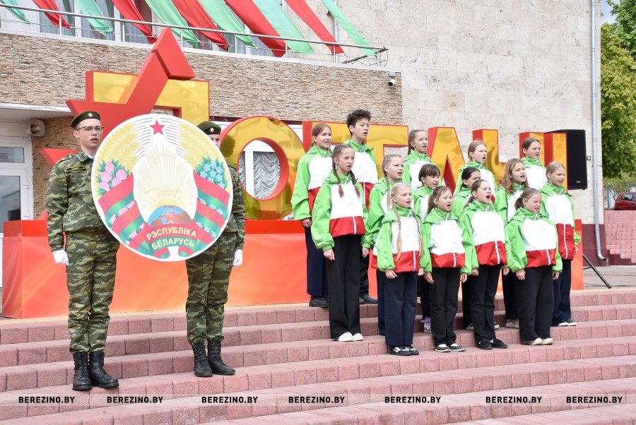 После звучания Государственного гимна Республики Беларусь, согласно утверждённой традиции, клятву верности государственным символам от лица молодого поколения произнесли учащиеся школ Березинщины.