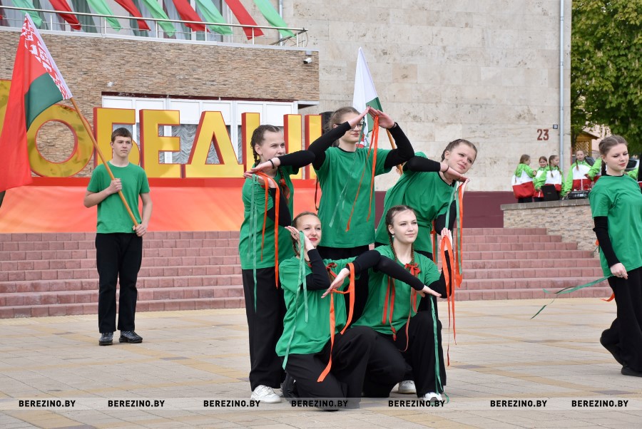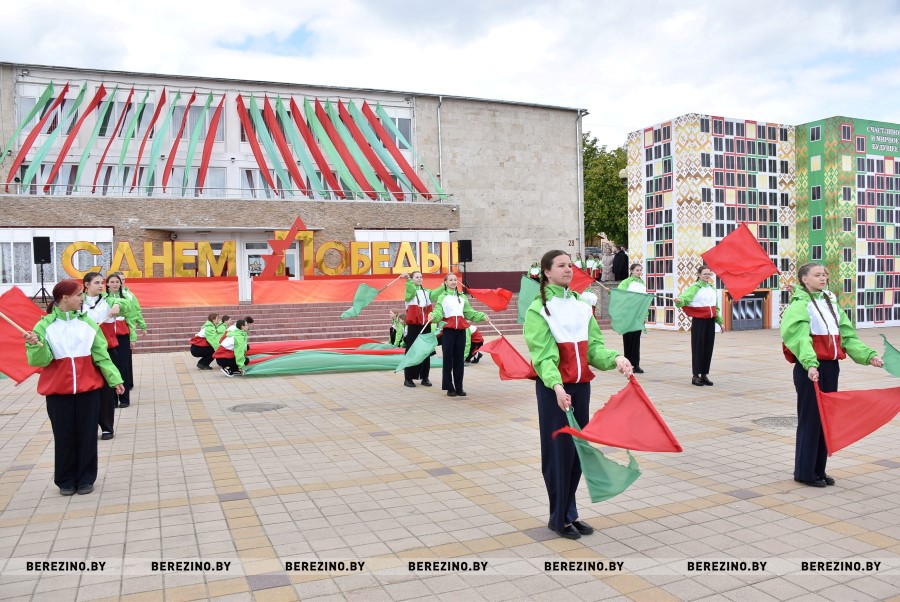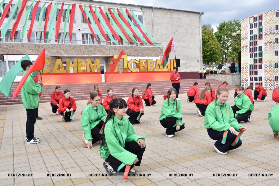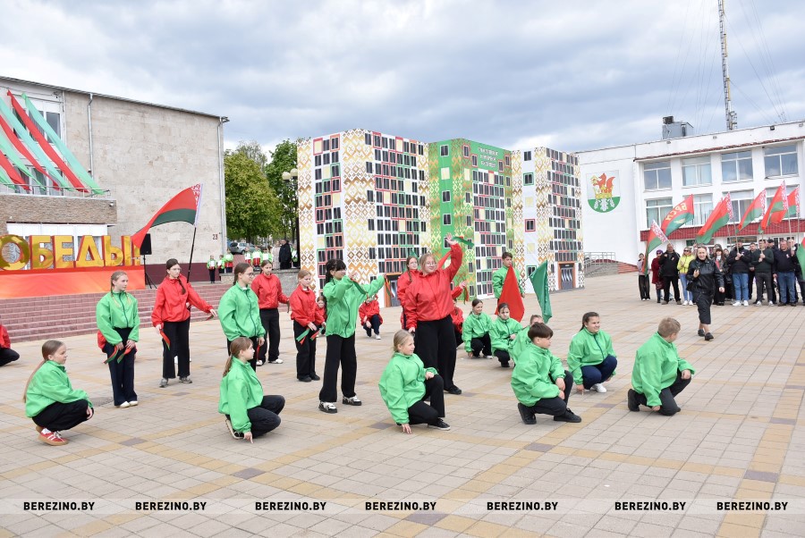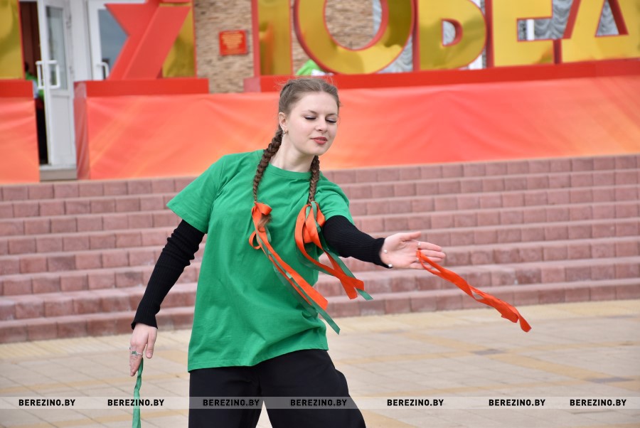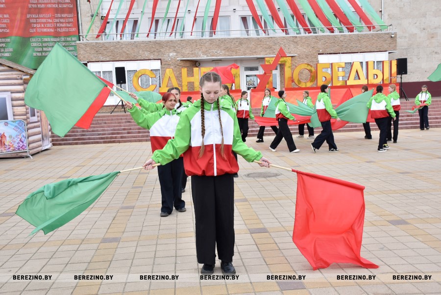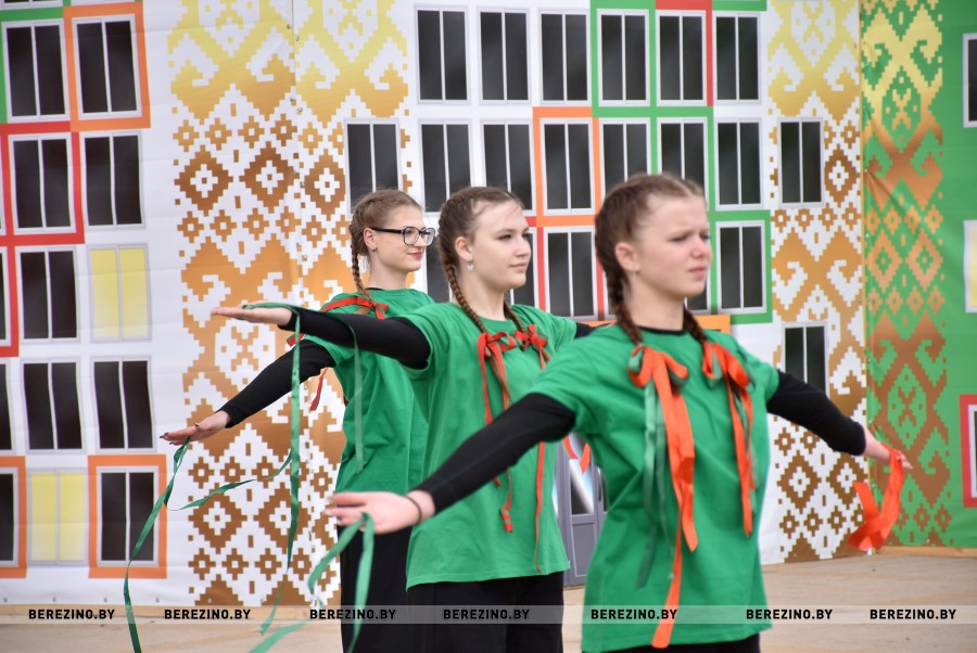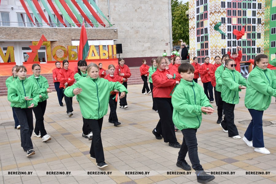 Затем состоялся флэш-моб, посвящённый праздничному дню. Ученики Березинской гимназии, Капланецкой и Поплавской школ, а также средней школы №2 г.Березино выступили с номерами флаг-шоу.