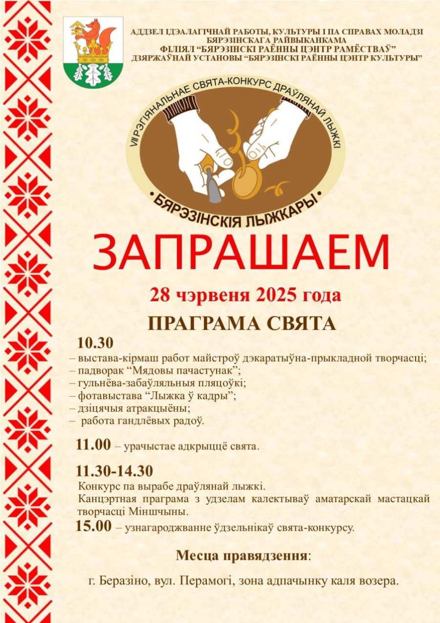 Запрашаем бярэзінцаў  і гасцей раёна на ўнікальнае рэгіянальнае свята-конкурс драўлянай лыжкі "БЯРЭЗІНСКІЯ ЛЫЖКАРЫ"
