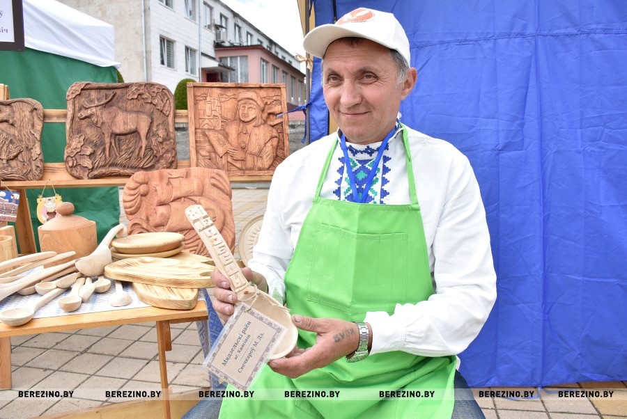 - Папулярнасць драўлянай лыжкі сёння павялічваецца з кожным годам, калі глядзець на колькасць майстроў на нашым сённяшнім свяце. У нас і дзеткі працуюць, і дарослых шмат працуе. Асабіста сам я зрабіў шмат лыжак рознага гатунку, і вялікія, і малыя. І ў розных конкурсах, фестывалях, кірмашах удзельнічаў. Запомнілася мабыць першая, якая не атрымлівалася. Крамя лыжак вырабляем вінажніцы, шпакоўні і шмат усяго рознага. І вучні радуюць, асабіста ў мяне іх пяць. І мерапрыемства сёння выдатнае!