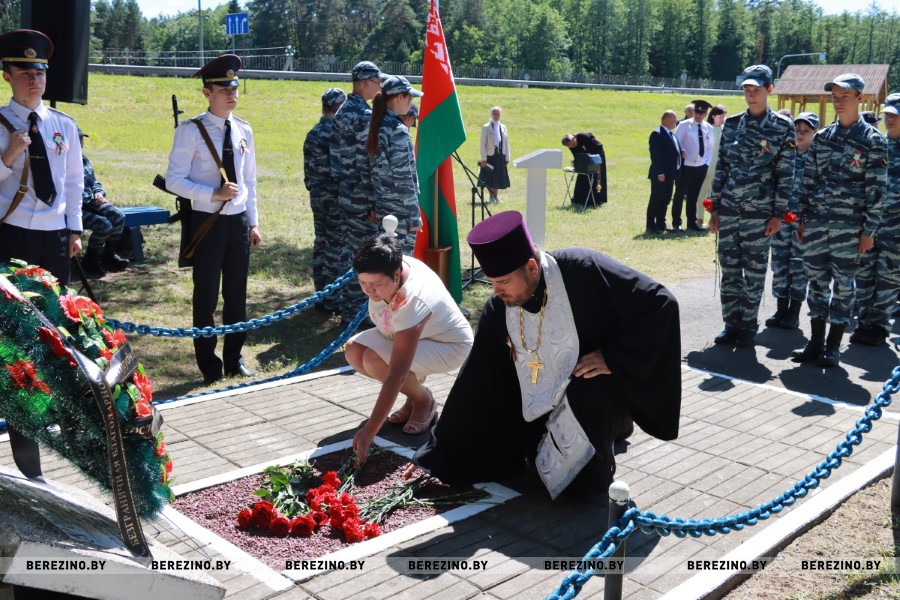 Благочинный Березинского церковного округа протоиерей Илья Гончарук в своём выступлении призвал сотворить молитву в упокоение душ павших в боях за Родину и отслужил молебен у памятника.