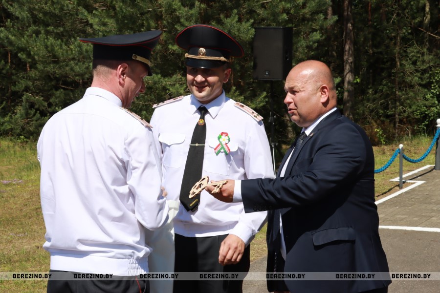 Глава Березинщины также вручил символические ключи от арендного жилья некоторым сотрудникам Березинского РОВД.