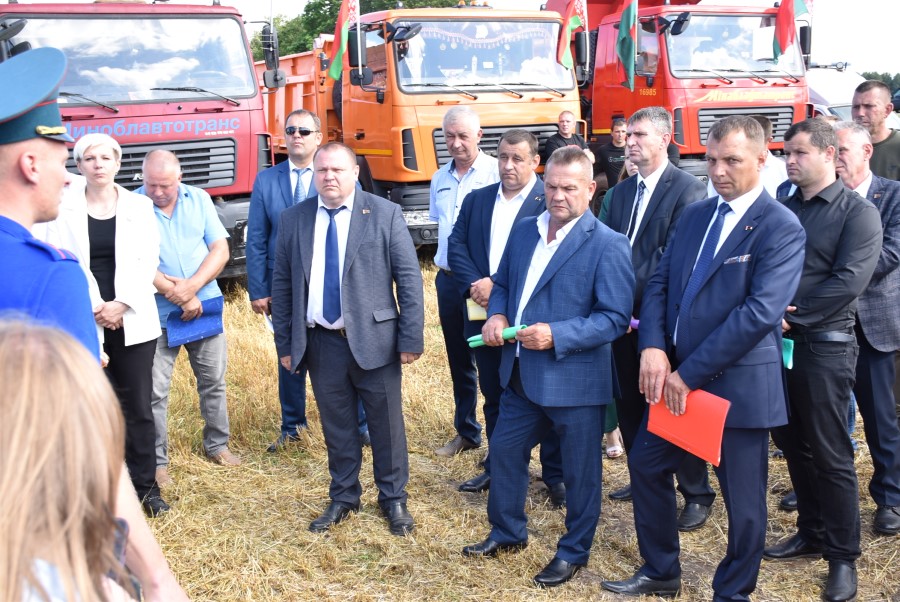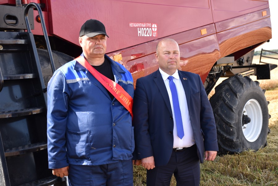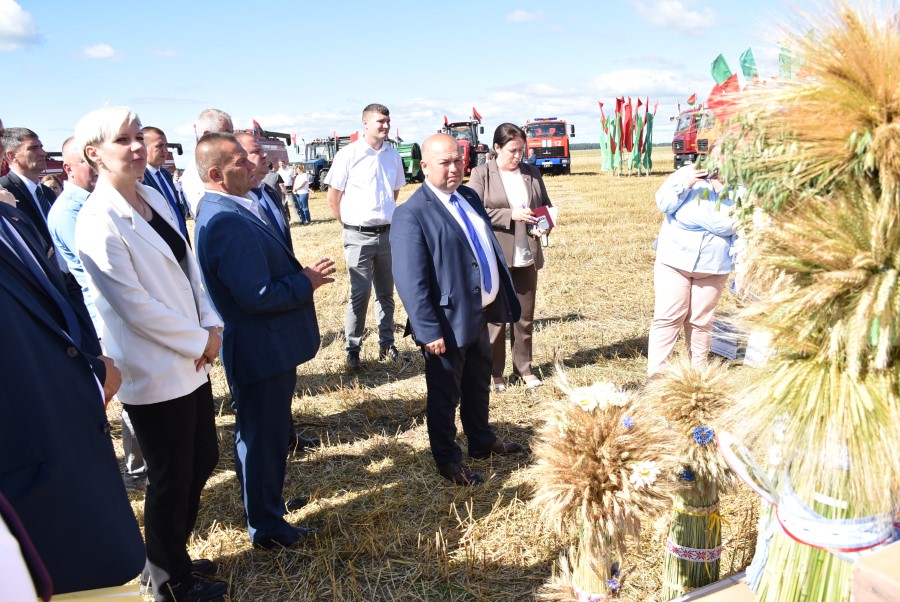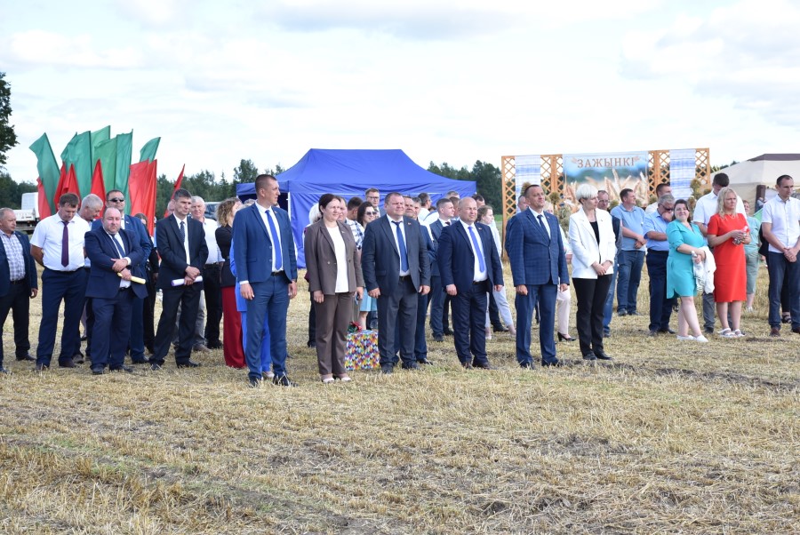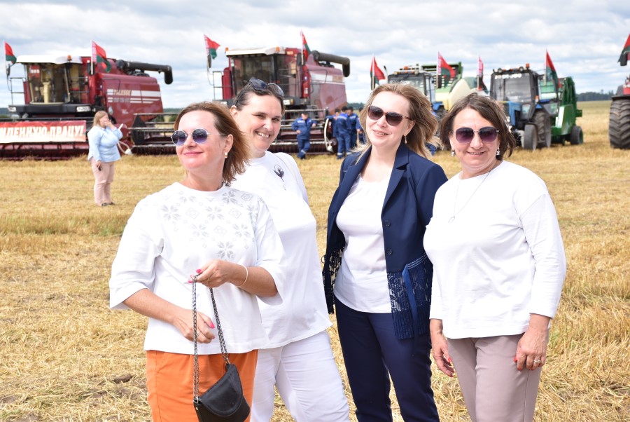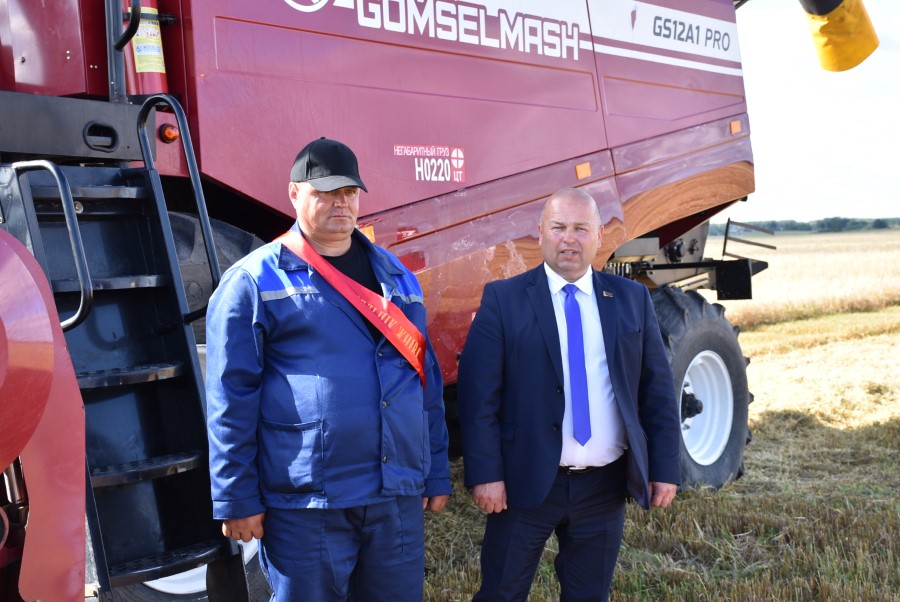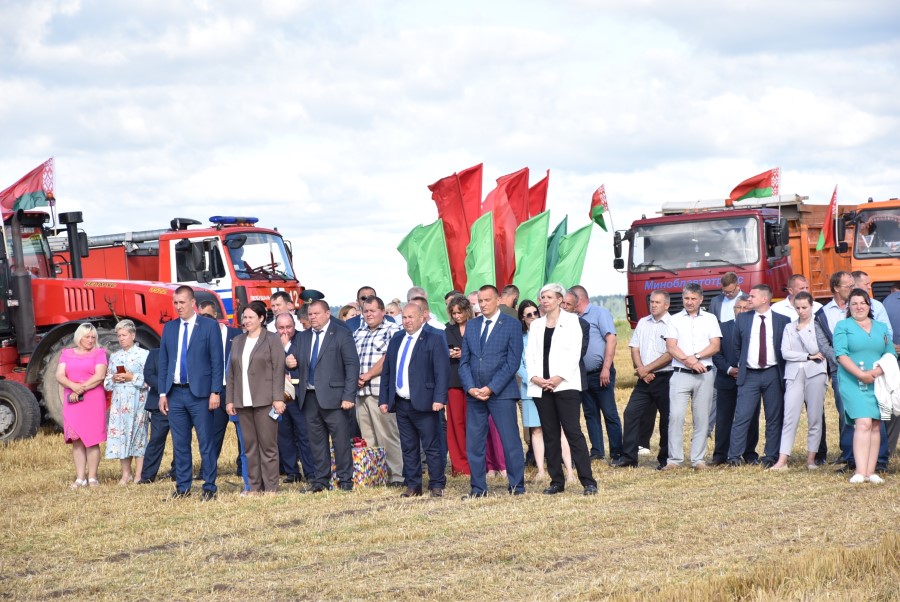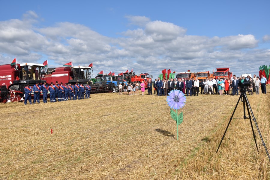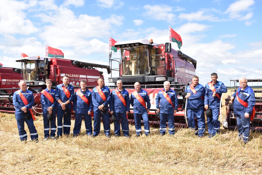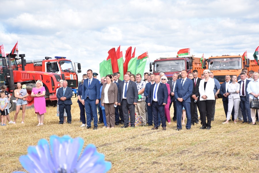 Но хватит уже ядреной ржи стоять в поле. Пора начать убирать созревшие хлеба, дать официальный старт жатве, а первому комбайну намолотить первые центнеры свежего зерна. Почетная миссия первыми выйти в поле предоставляется председателю райисполкома Андрею Соколовскому и комбайнеру ОАО «Погостский» Александр Ермолович. И вот комбайн плавно отправляется в путь. Пусть сегодня он лишь условный, недолгий. Но завтра, да и в последующие дни жатвы, именно они, могучие комбайны и управляющие ими комбайнеры, станут главными действующими лицами, главными тружениками и добытчиками хлеба, нашей надеждой на зажиточную жизнь. В добрый путь, хлеборобы! Спасибо вам за ваш труд. И пусть будет он благославенным, приносящим вам радость и трудовые победы!