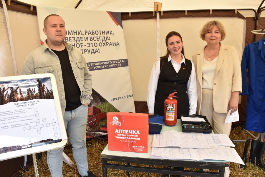 Не была она нарушена и на сей раз. Небольшим исключением стал тот момент, что в этот день праздник был совмещен и с решением ряда производственных вопросов. Так, в специально оборудованной палатке специалисты управления по труду, занятости и социальной защите напомнили гостям основные требования охраны труда, предъявляемые во время жатвы. Был проэкзаменован на знание правил охраны труда и председатель Березинского райисполкома Андрей Соколовский: ведь ему в этот день предстояло сесть в комбайн и вместе с механизатором ОАО «Погостский» Александром Ермоловичем начать официальную жатву. А без предварительного инструктажа и выдачи специального удостоверения допустить к работе нельзя. Испытания прошли успешно. Затем свое слово сказали и представители центра подготовки, повышение квалификации и переподготовки кадров управления по сельскому хозяйству Березинского райисполкома. Основной упор инструктажа они сделали на недопущении потерь убранного урожая, герметизацию бункеров комбайнов и кузовов автомобилей, правильную отладку механизмов и агрегатов. В противном случае недобор урожая может составить десять процентов, чего допустить никак нельзя.
