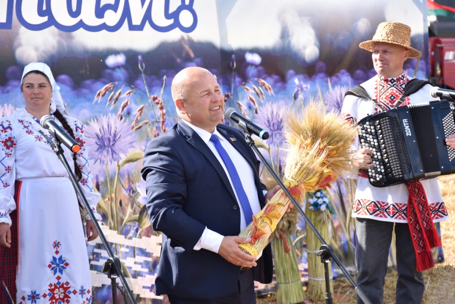Со словами приветствия и с правом открыть жатву-2025 года к присутствующим обратился председатель районного исполнительного комитета Андрей Соколовский.