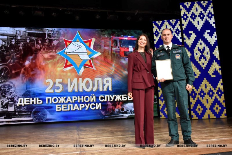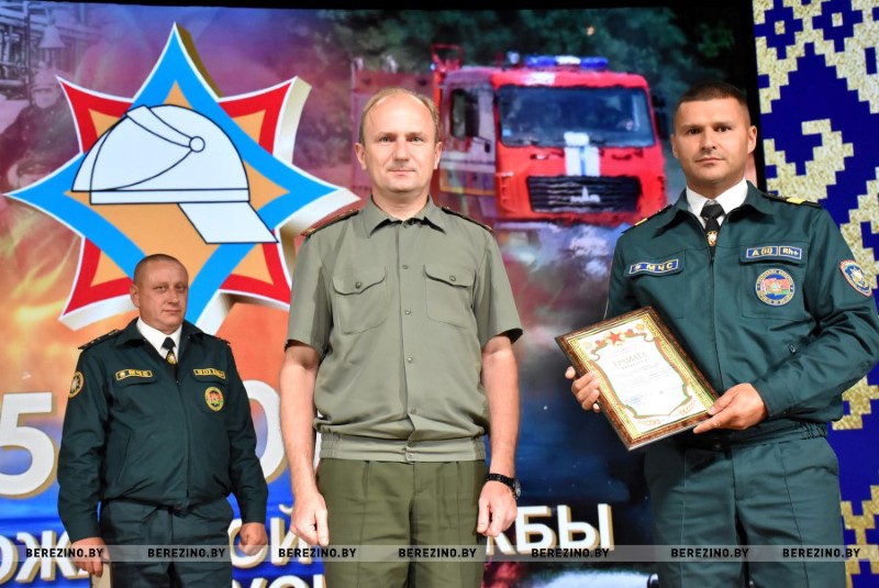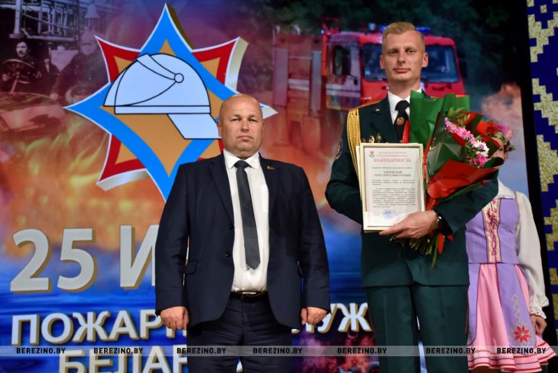 Иван Мазаник также был отмечен грамотой, которую ему вручил председатель Березинского суда Алексей Кропачев. А вот старшему прапорщику внутренней службы Дмитрию Григоровичу – водителю ПАСЧ №1, старшему прапорщику внутренней службы Евгению Сигуеву – старшему инструктору-спасателю ПАСЧ №1 грамоты вручил начальник Березинского отделения департамента охраны Даниил Таратин. Не менее приятно было получать благодарственные письма из рук главного врача учреждения здравоохранения “Березинская ЦРБ” Кристину Крук начальнику РОЧС Ивану Мазанику, майору внутренней службы Констанину Богачу – инспектору сектора надзора и профилактики РОЧС, старшему лейтенанту внутренней службы Алексею Кривороту – заместителю начальника РОЧС.