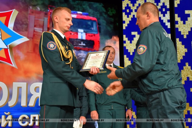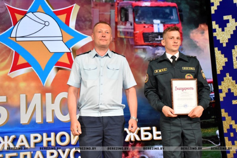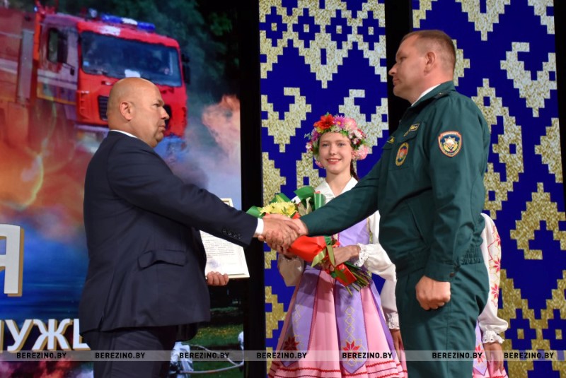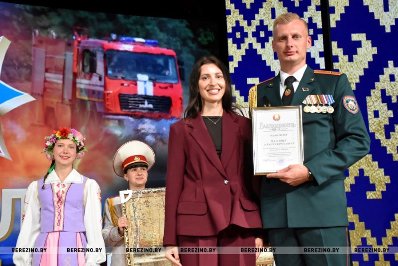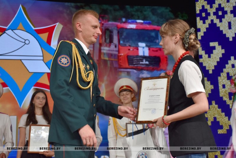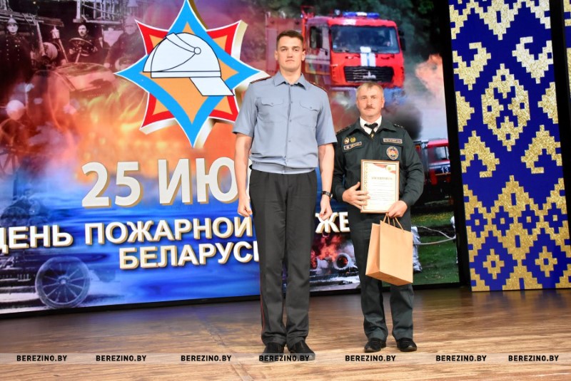 Ряд гостей праздника был отмечен благодарностью районного отдела по чрезвычайным ситуациям. Среди них – ветераны пожарной службы Николай Андриевич, Юрий Альфер и Наталия Синкевич, а также члены клуба юных спасателей-пожарных “Сирена” Валерия Шмарловская, Василий Коленкович, Анастасия Ермолович, Глеб Тимошенко и Кира Стрижень. За плодотворную связь с органами МЧС грамотой учреждения “Минское областное управление МЧС” кроме того была отмечена главный бухгалтер районного комитета БРСМ Оксана Соболь. За активное взаимодействие с Березинским РОЧС и проявление творческой инициативы отмечена София Кушнер, отец которой, кстати, много лет отдал службе спасения.