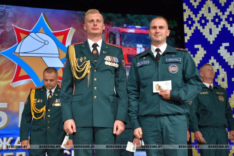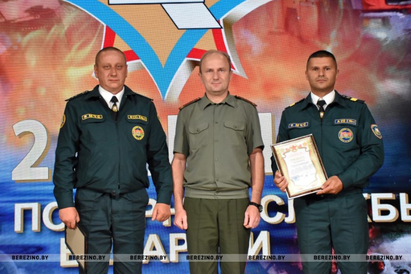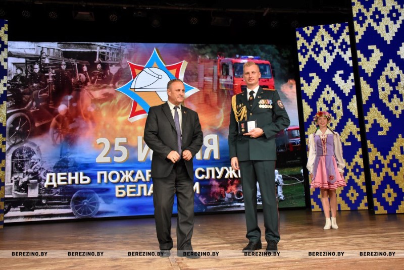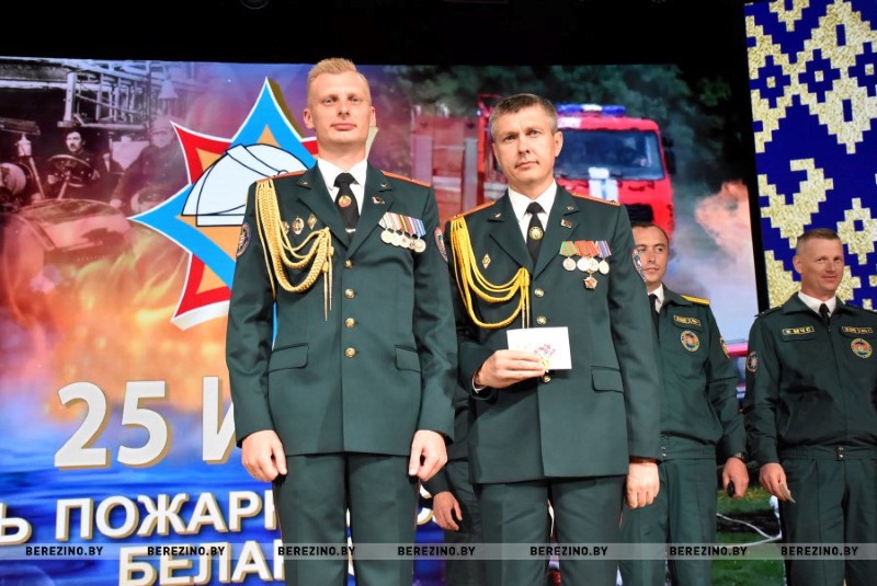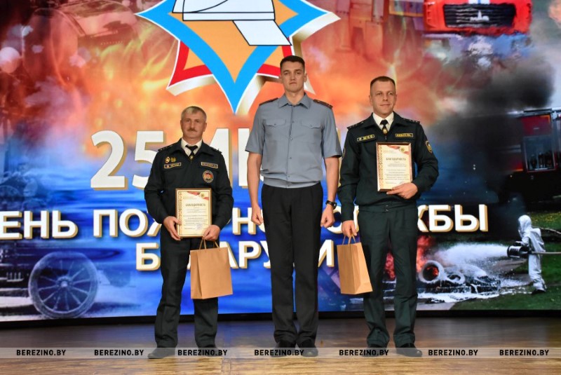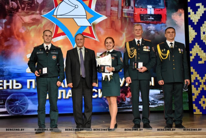 Этим же приказом награждены нагрудным знаком МЧС «Выдатнік” прапорщик внутренней службы Дмитрий Пенкрат и старший инструктор ПАСП №12, прапорщик внутренней службы Александр Свиридович, водитель ПАСП №11. Почетной грамотой МЧС Республики Беларусь награжден старший прапорщик внутренней службы Александр Буримский – старший инструктор-спасатель ПАСЧ №11. Юбилейной медалью органов и подразделений, подчиненных МЧС «170 год пажарнай службе» отмечен подполковник внутренней службы Александр Лагун – заместитель начальника отдела по чрезвычайным ситуациям. Памятный нагрудный знак органов и подразделений МЧС «165 год пажарнай службе» вручен майору внутренней службы Дмитрию Анципову – первому заместителю начальника Березинского РОЧС, майору внутренней службы Константину Богачу – старшему инспектору отдела надзора и профилактики РОЧС, лейтенанту внутренней службы Никите Булойчику –начальнику дежурной смены ПАСЧ №1, старшему прапорщику внутренней службы Александру Войтеховичу – старшему инструктору-спасателю ПАСП №11, старшине внутренней службы Сергею Романовскому – старшему инструктору-спасателю ПАСЧ №1. Также объявлена благодарность начальника учреждения «Минское областное управление МЧС» сержанту внутренней службы Максиму Сакову – мастеру-спасателю ПАСЧ №1, сержанту внутренней службы Петру Шкатуло – водителю ПАСЧ №1.