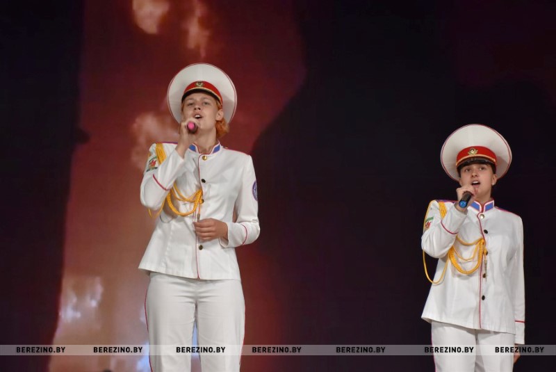 Затем свое поздравление виновникам праздника представили члены отряда “Искорки”, недавно созданного РОЧС на базе детского сада №3 г. Березино. Исполнение песни этим дружным коллективом вызвала у присутствующих громкие аплодисменты.