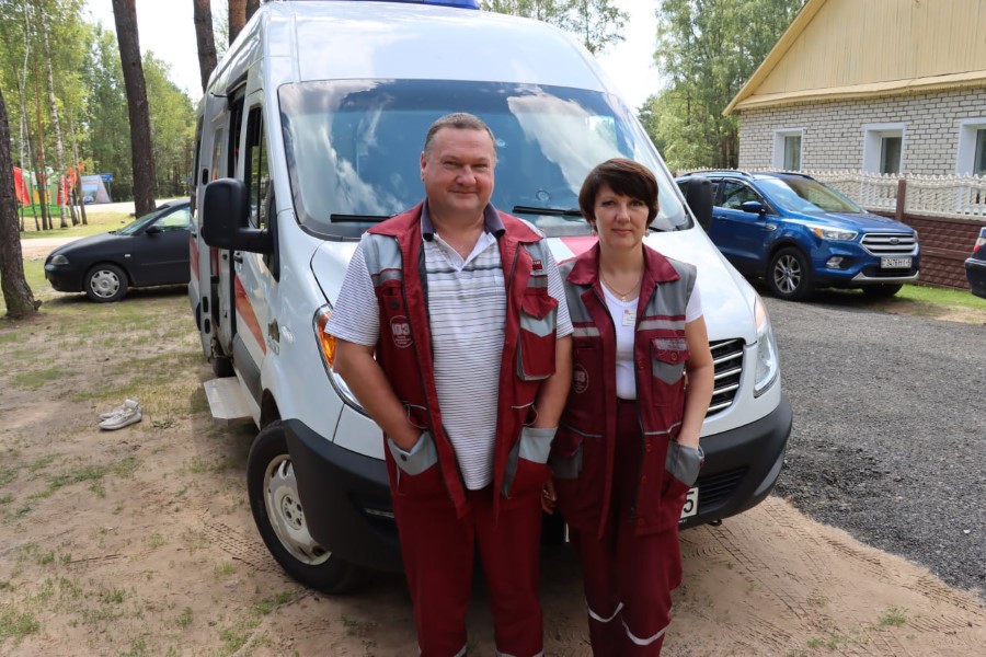 Дежурят также бригада скорой помощи и сотрудники милиции.