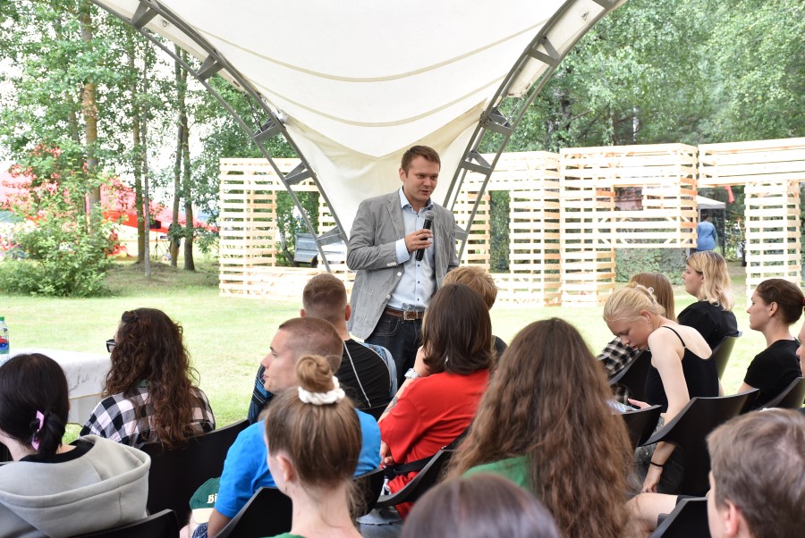 Для молодёжи, любящей обсудить серьёзные темы, было приготовлены две диалоговые площадки. На одной из них на тему «Внешнеэкономическая политика Республики Беларусь» беседу вёл известный белорусский политолог Андрей Лазуткин. На второй – методист Национального центра художественного творчества детей и молодёжи Министерства образования Республики Беларусь, куратор республиканского детского и подросткового совета (парламента) Мария Ласевич вела с присутствующими разговор на тему «Развитие творческого потенциала молодёжи Республики Беларусь». На обеих площадках шли оживлённые дебаты, дискуссии протекали в активном режиме и вызвали неподдельный интерес у всех участников.