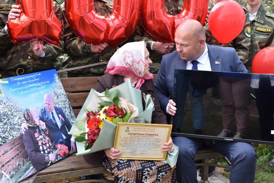 – Поздравляем вас с вашим 100-летним юбилеем! Спасибо, что вы у нас есть! Крепкого здоровья, удачи, благополучия, бодрости духа. Вы заряжаете нас своей энергией, оптимизмом и трудолюбием. Мы всегда рядом с вами!