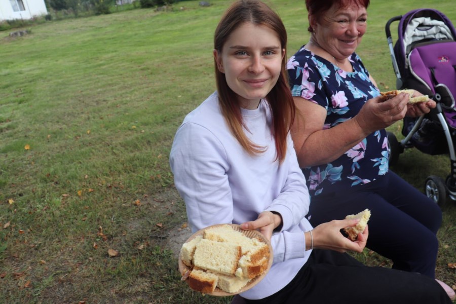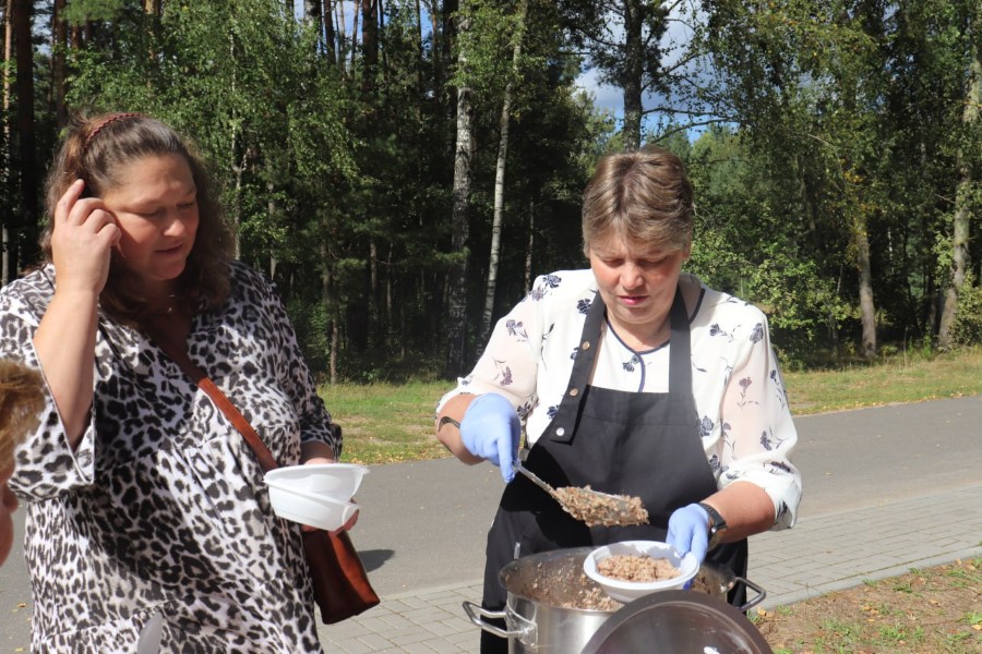 Тым часам на свяце ва ўсю ішло ўшаноўванне землякоў – ад самых старэйшых і паважных, да самых юных немаўлят. Для кожнага знайшліся шчырыя словы прывітання і віншавання. Першым жа ў гэтым спісе была Кацярына Касцяневіч, на календары якой вось ужо 91-ы год. Дабра і міру пажадала жанчына ўсім, а таксама выказала падзяку за тую памяць, якую захоўваюць сённяшнія пакаленні аб тых, хто гадамі ўносіў свій уклад у працвітанне вёскі і роднай гаспадаркі.