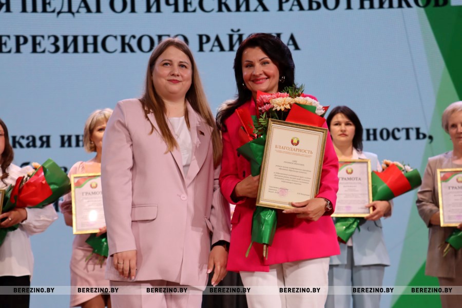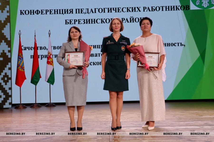 За плодотворную работу, достигнутые успехи в организации образовательного процесса, высокий профессионализм Благодарственное письмо председателя Березинского районного исполнительного комитета вручено: педагогу Центра коррекционно-развивающего обучения и реабилитации Березинского района Татьяне Галуза, заместителю заведующего детского сада №4 Татьяне Ефремовой, учителю искусства СШ№2 Елене Жданович.