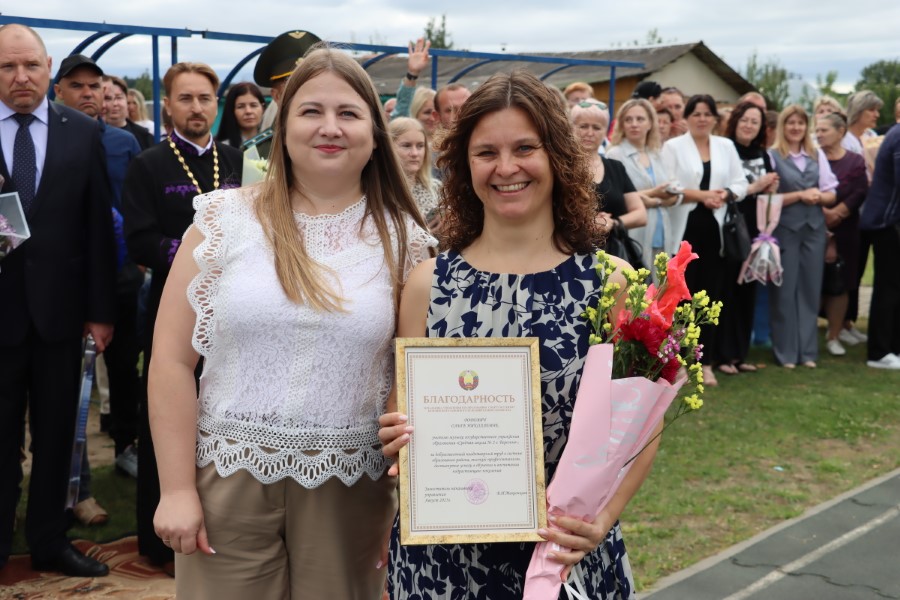 Заместитель начальника управления по образованию, спорту и туризму Березинского райисполкома Вероника Макеенкова и заместитель начальника отдела идеологической работы, культуры и по делам молодёжи Валерия Карецкая вручили награды лучшим педагогам школы.