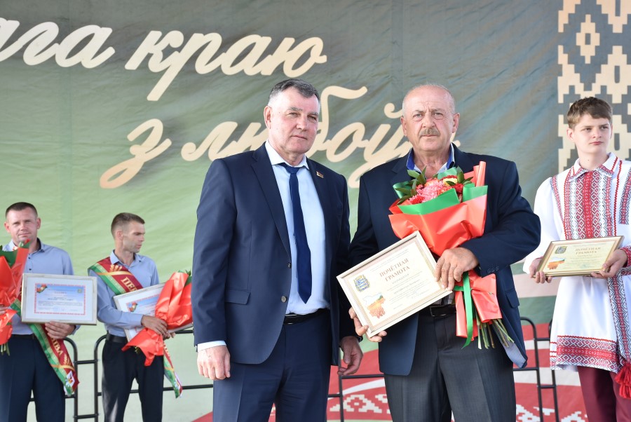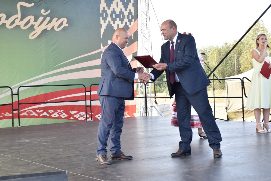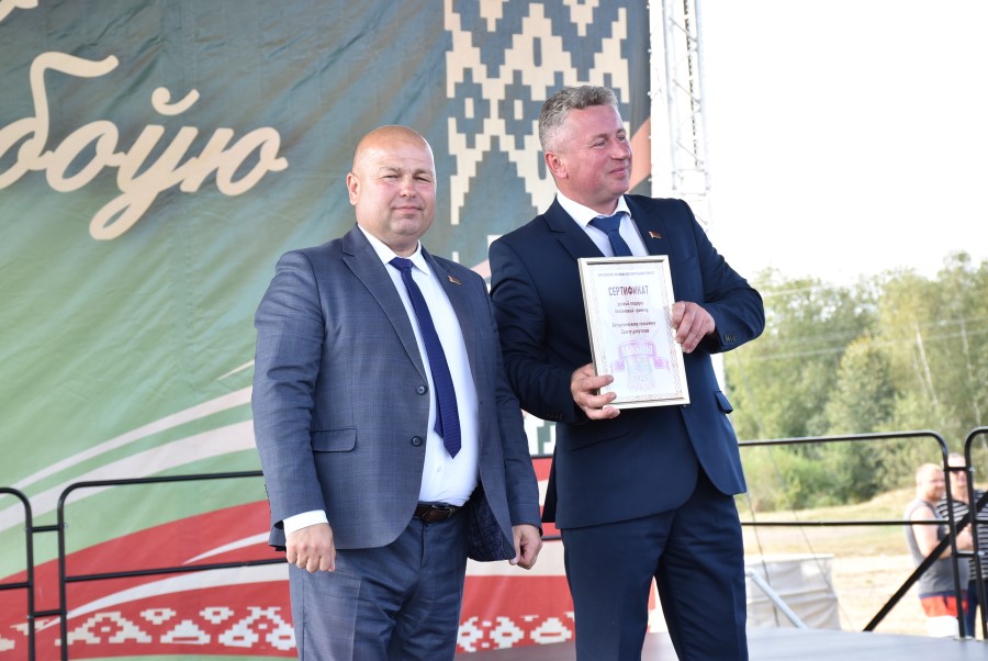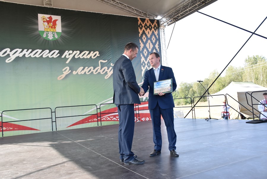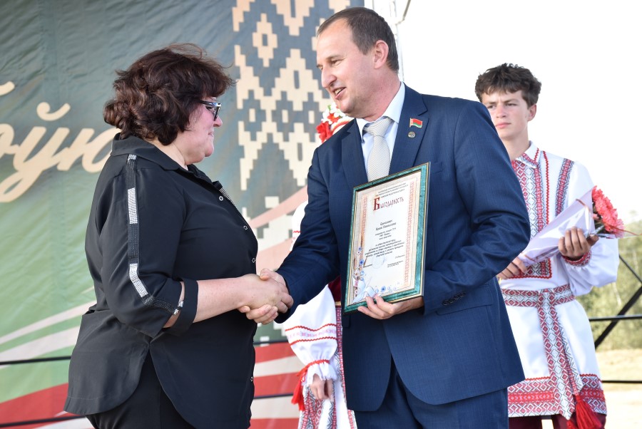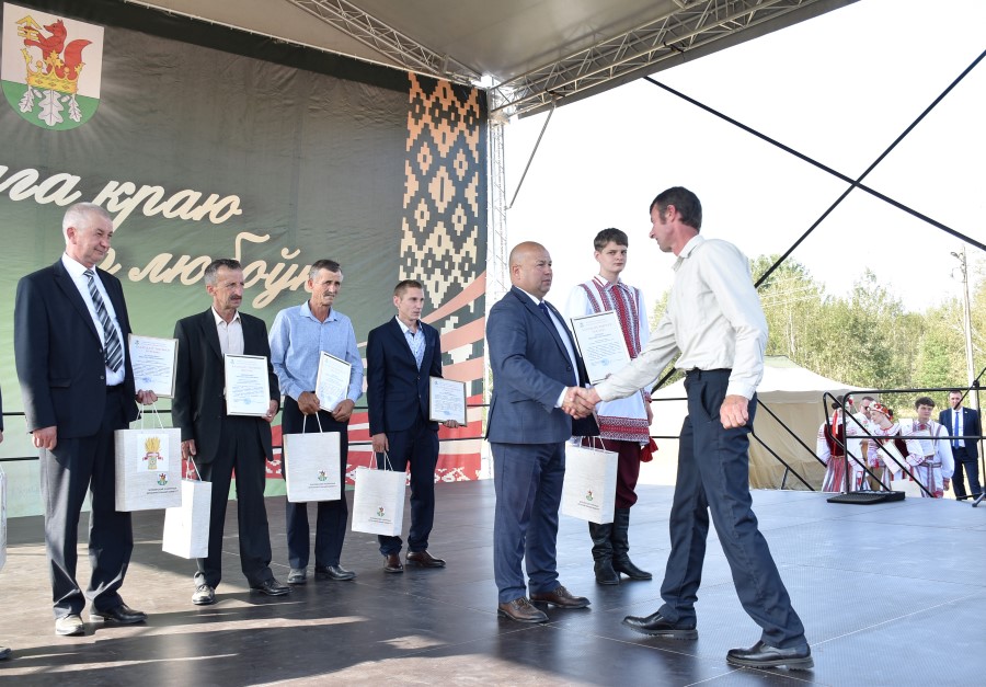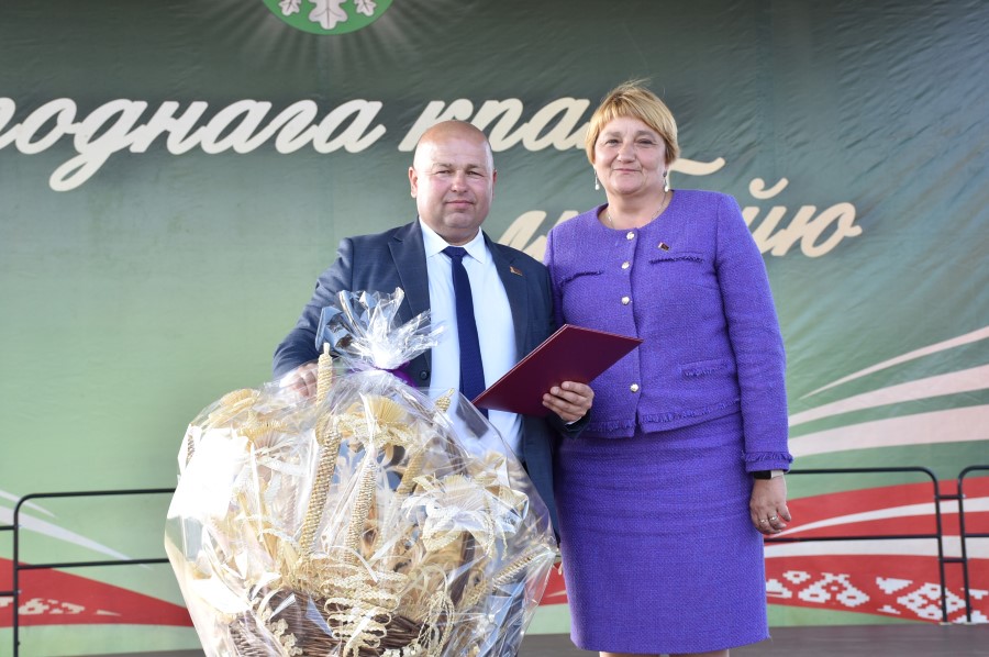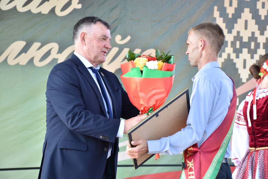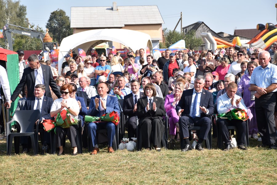 Уважаемые аграрии, коллективы и руководители организаций, все, кто внес свой вклад в нашу хлебную победу. Спасибо вам за ваш труд, который является основой экономики нашего региона, залогом его развития и процветания. От всей души делаю вам и вашим семьям крепкого здоровья, мира, добра, новых трудовых побед, богатых урожаев и роста благополучия. Слова благодарности и глубокой признательности выражаю всем, кто оказал помощь и содействие в благоустройстве населенного пункта в подготовке к мероприятию. Мы ставили задачу не только организовать яркий праздник для тружеников села, но и благоустроить место его проведения. Заасфальтированы и отремонтированы улицы и дороги, проведена замена и установка заборов, восстановлено уличное освещение сделано и многое другое. На результат работали организации дорожной сферы, жилищно-коммунальной, лесной, мелиорации, энергетики, сельские Советы и население. Вот так, сплотившись, все вместе, в Год благоустройства, мы улучшаем качество жизни наших жителей. Огромное спасибо предприятиям, оказавшим содействие в чествовании наших хлеборобов. Это Минский мотовелозавод, Минский автомобильный завод, общества с ограниченной ответственностью «Электросила» и «Магия стройки». Особые слова благодарности за многолетнее плодотворное сотрудничество ООО «Ома» и лично генеральному директору Игорю Евгеньевичу Адаменко. Мы высоко ценим не только финансовый вклад в организацию проведения праздника, неоднократную спонсорскую поддержку на развитие района, но и конструктивное партнерство по многим направлениям. Рассчитываем на дальнейшее крепкое сотрудничество и совместные достижения.
