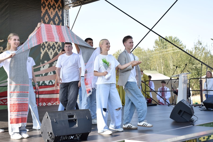 От нее дорога на праздник вела через символический мостик, где руководителей района, области и гостей праздника приветствовали молодые специалисты Березинщины.