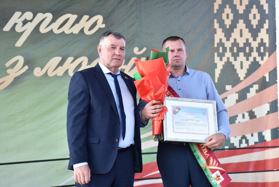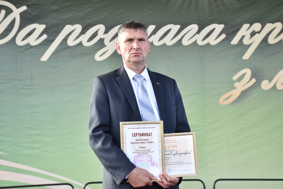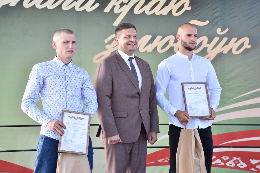 Не остался в долгу перед березинскими тружениками полей и депутат Палаты представителей Национального собрания Республики Беларусь Юрий Корсик. Он вручил благодарности депутата Палаты представителей Национального собрания трактористу-машинисту ОАО «Бродец» Илье Корику и главному инженеру ОАО «Погостский» Кириллу Мотузу.