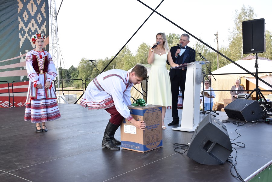 Не остались в стороне и усилия, приложенные в ходе подготовки к «дожинкам» принимающей стороной. В данном случае это Богушевичский сельский Совет. Ценным подарком (триммером, который будет в дальнейшем помогать ему наводить порядок на территории Совета) отмечен его председатель Сергей Шабан. Еще одним хозяином праздника по праву можно назвать директора сельхозфилиала «Ома» Дмитрия Колоцея. Не остался без подарка и он.