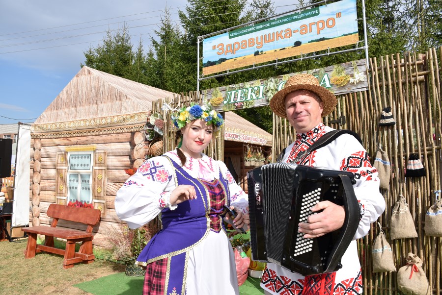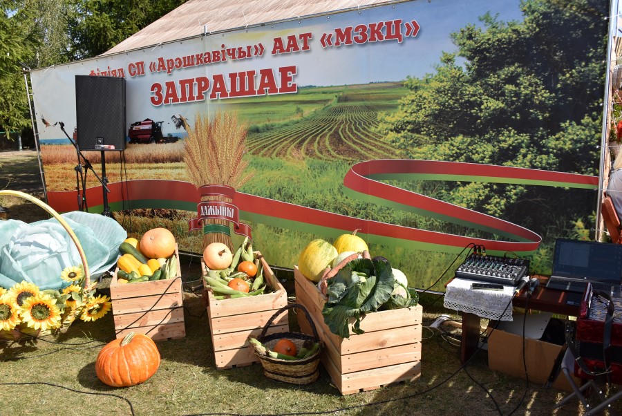 На ней, пройдя через распахнутую установленную дверь, гостям было представлено 11 импровизированных подворий. Их хозяевами были сельхозпредприятия региона. Чего тут только не было, какие тематические названия они не носили: «Хата бацькоў», «Хлеб мира и единства», «Кафе тысячников»…
