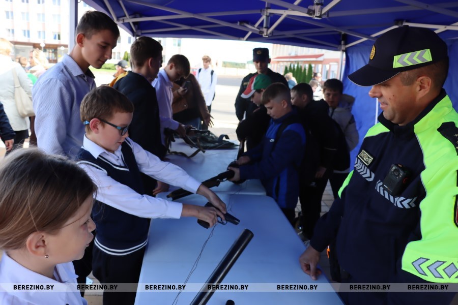 Локация Березинского РОВД привлекала ребят возможностью ознакомиться с настоящим оружием, которое используется стражами правопорядка, а также возможностью посидеть в патрульной машине отделения Госавтоинспекции.