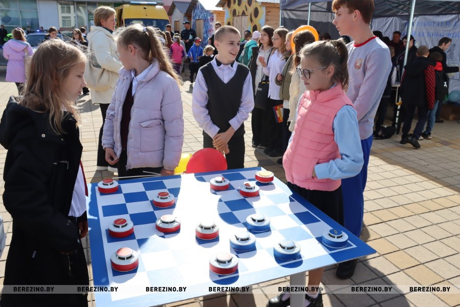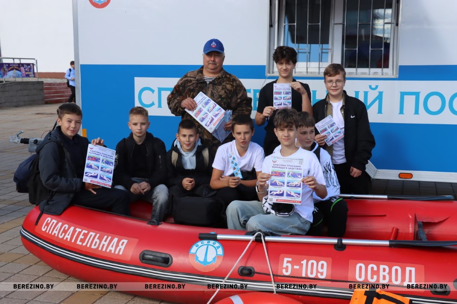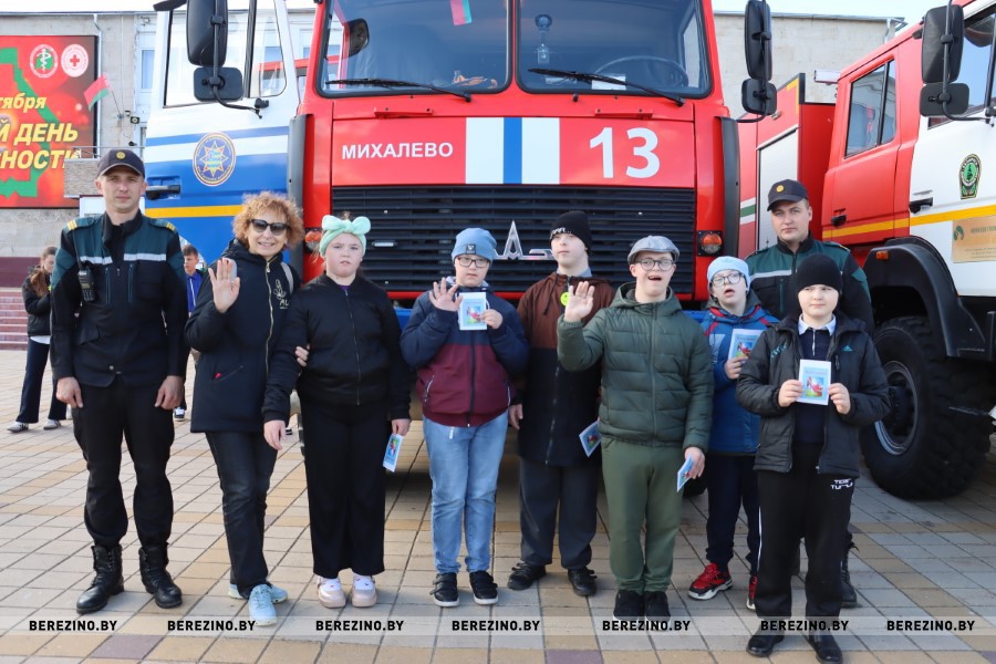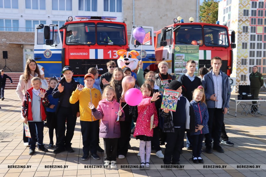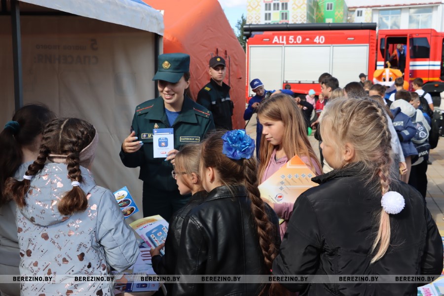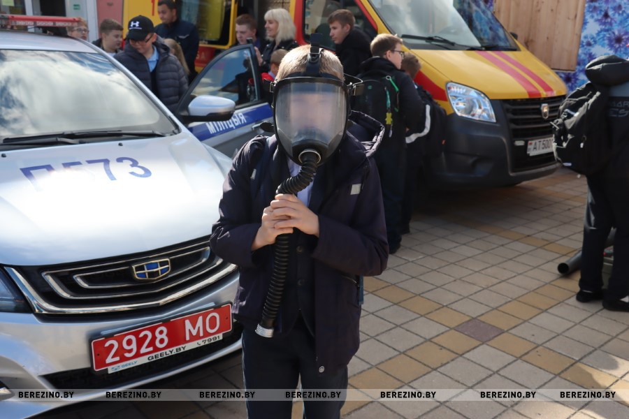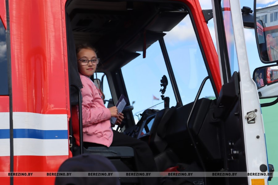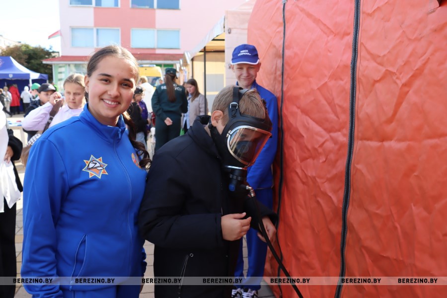 Центральным звеном на площади была локация Березинского РОЧС. Здесь можно было не только поиграть в игры, пошуметь, посидеть в пожарной машине и посигналить, но также в противогазе зайти в дымовую камеру и ощутить себя настоящим спасателем.