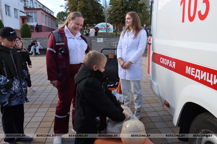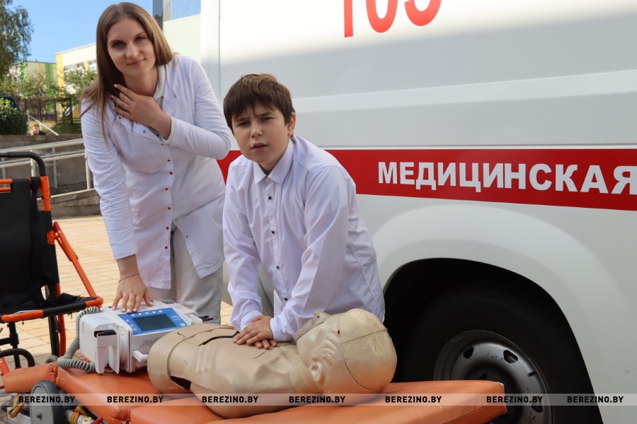 На локации Березинской ЦРБ и станции скорой помощи дети учились делать искусственное дыхание и оказывать первую помощь.