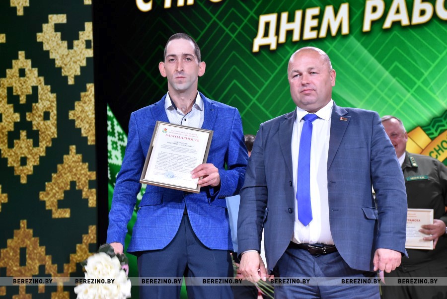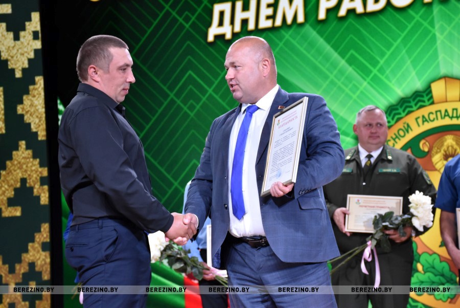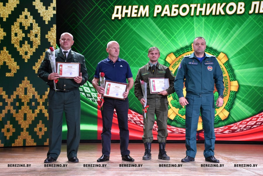 Почётной грамотой Березинского райисполкома за многолетний, добросовестный и плодотворный труд в отрасли лесного хозяйства награждён директор государственного учреждения «Березинский лесхоз» Сергей Чемко, Благодарностями Березинского райисполкома награждены вальщик леса Дмитровичского лесничества Александр Лобач, станочники деревообрабатывающих станков производственного мастерского участка «Березино» Сергей Литвинов и Максим Добряков, тракторист на подготовке лесосек, трелёвке и вывозке леса Богушевичского лесничества Степан Саколин.
