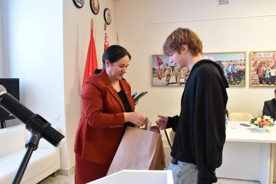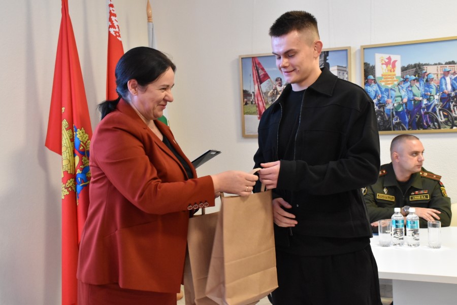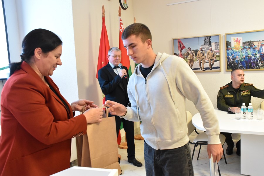 Обратилась к призывникам заместитель начальника Березинского райисполкома Алеся Титова. Алеся Алексеевна пожелала каждому призывнику достойной службы. И вручила подарки.