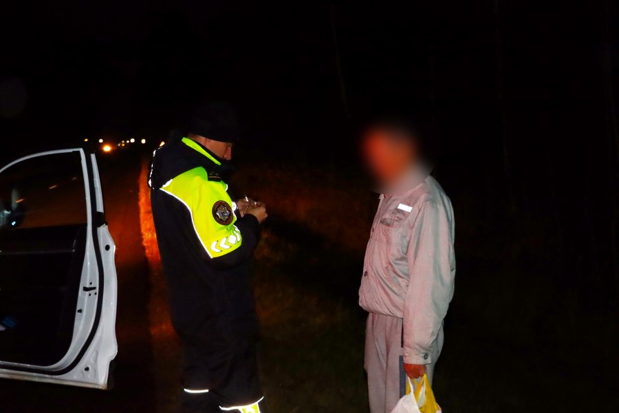 Во время рейда у д. Жорновка увидели, как мужчина шел по обочине дороги без световозвращающих элементов и в полной темноте. Мужчина также был привлечен к установленной законом к ответственности, кроме того сотрудники Госавтоинспекции наклеили на его одежду световозвращающие полосы.