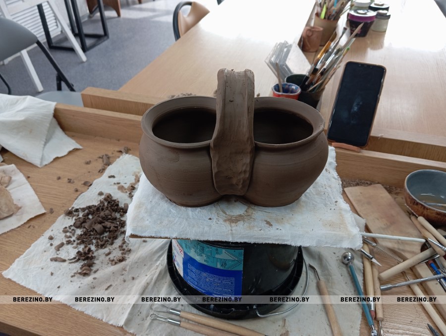– Вот в такой посуде в старинные времена жёны носили обеды мужьям в поле, – демонстрирует Анна Анатольевна новое, почти готовое, изделие из глины.