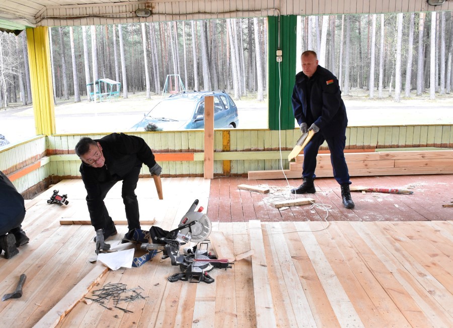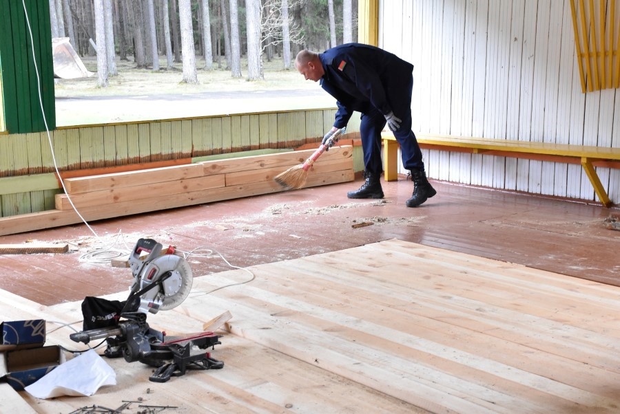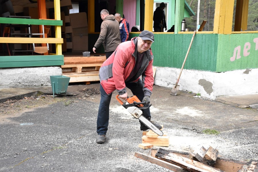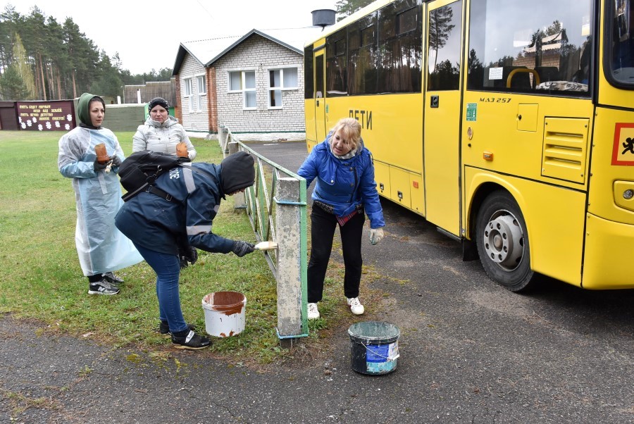Вовсю кипела работа в оздоровительном детском летнем лагере «Папараць-кветка». Здесь трудились представители сферы образования и Березинской прокуратуры. Объём работ по всему лагерю впечатлял: затронули и тему озеленения, и уборки, и многое другое. Десант педагогов, учителей, работников административного аппарата красил, сгребал сучья, грузил мусор в погрузчик, выполнял множество других работ. И всё – с оптимистичным настроем и вдохновением.