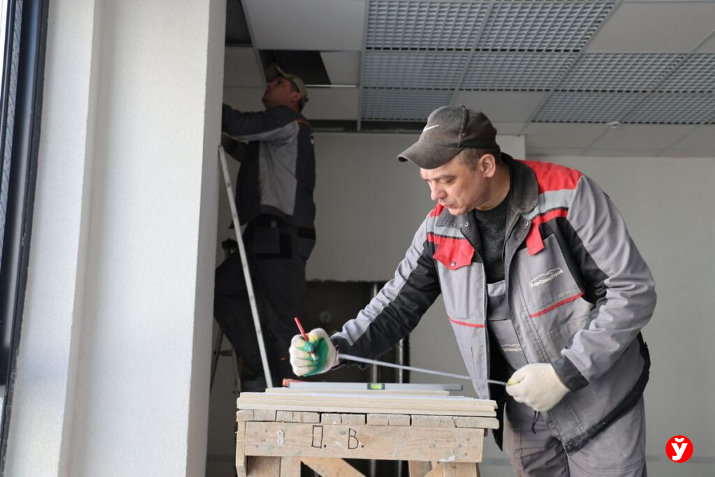На сегодня объект готов на 85%. Впереди — чистовые отделочные работы. Чтобы ускорить процесс и приблизить долгожданное открытие, на стройку приехал трудовой десант Миноблисполкома во главе с губернатором Алексеем Кушнаренко и помощником Президента – инспектором по Минской области Александром Коханом. Тем более, и повод есть — республиканский субботник.
